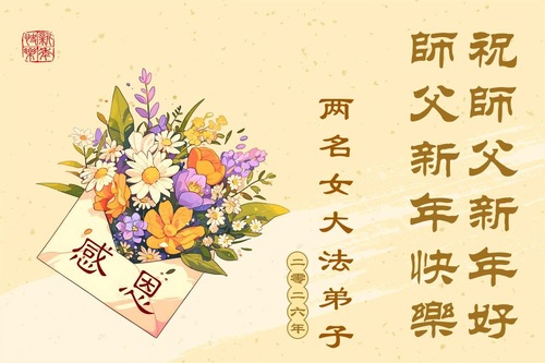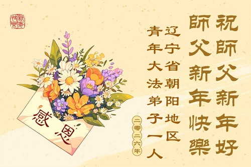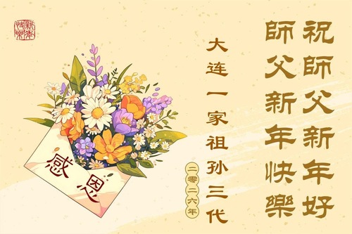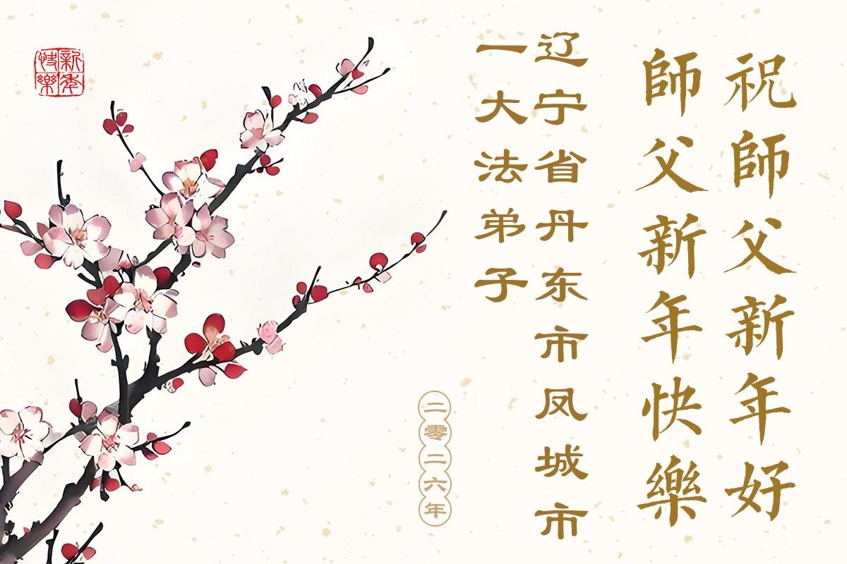 (Minghui.org) Zu Neujahr senden Falun-Dafa-Praktizierende auf der ganzen Welt traditionell Neujahrsgrüße, Grußkarten, Gedichte und Fotos an die Minghui-Website. Damit wünschen sie ihrem verehrten Meister Li Hongzhi ein frohes neues Jahr und bringen dem Meister ihre Dankbarkeit für die barmherzige Errettung zum Ausdruck. Sie geloben, in ihrer Kultivierung fleißig voranzukommen und noch mehr Lebewesen zu erretten. Im Folgenden veröffentlichen wir einen Teil dieser Grüße aus Jilin: