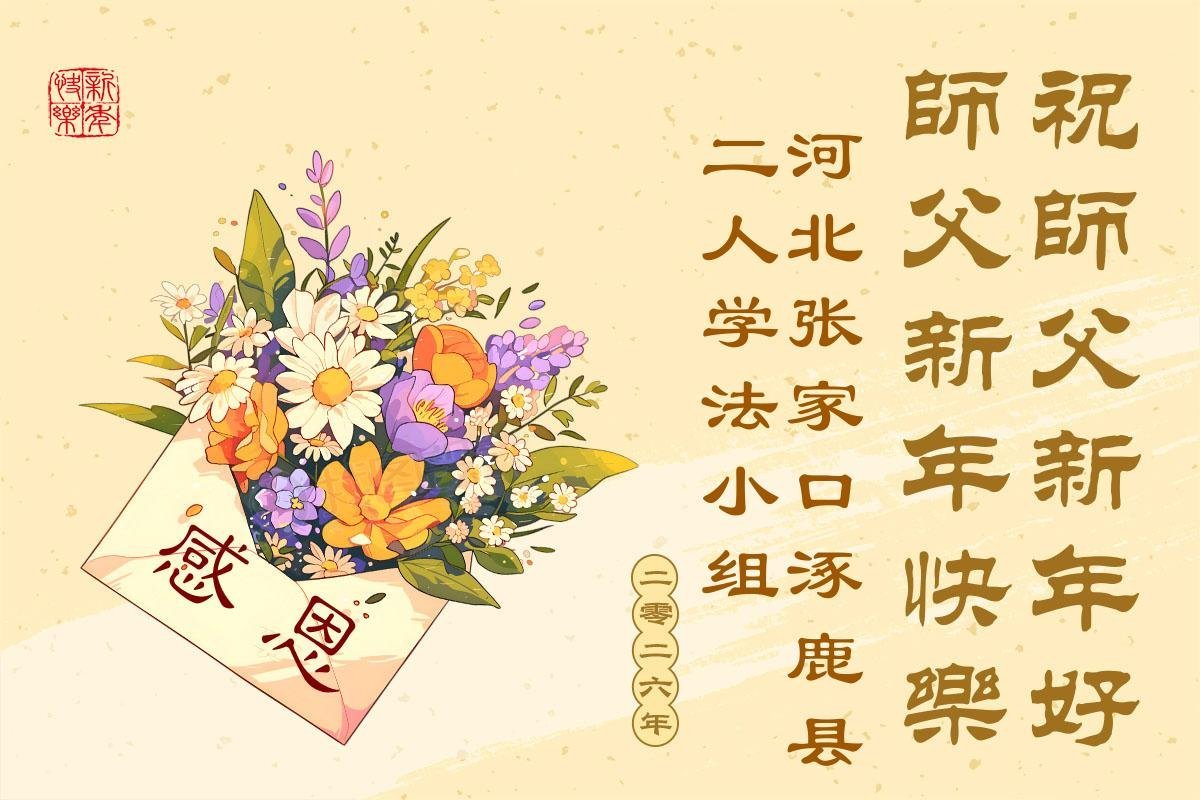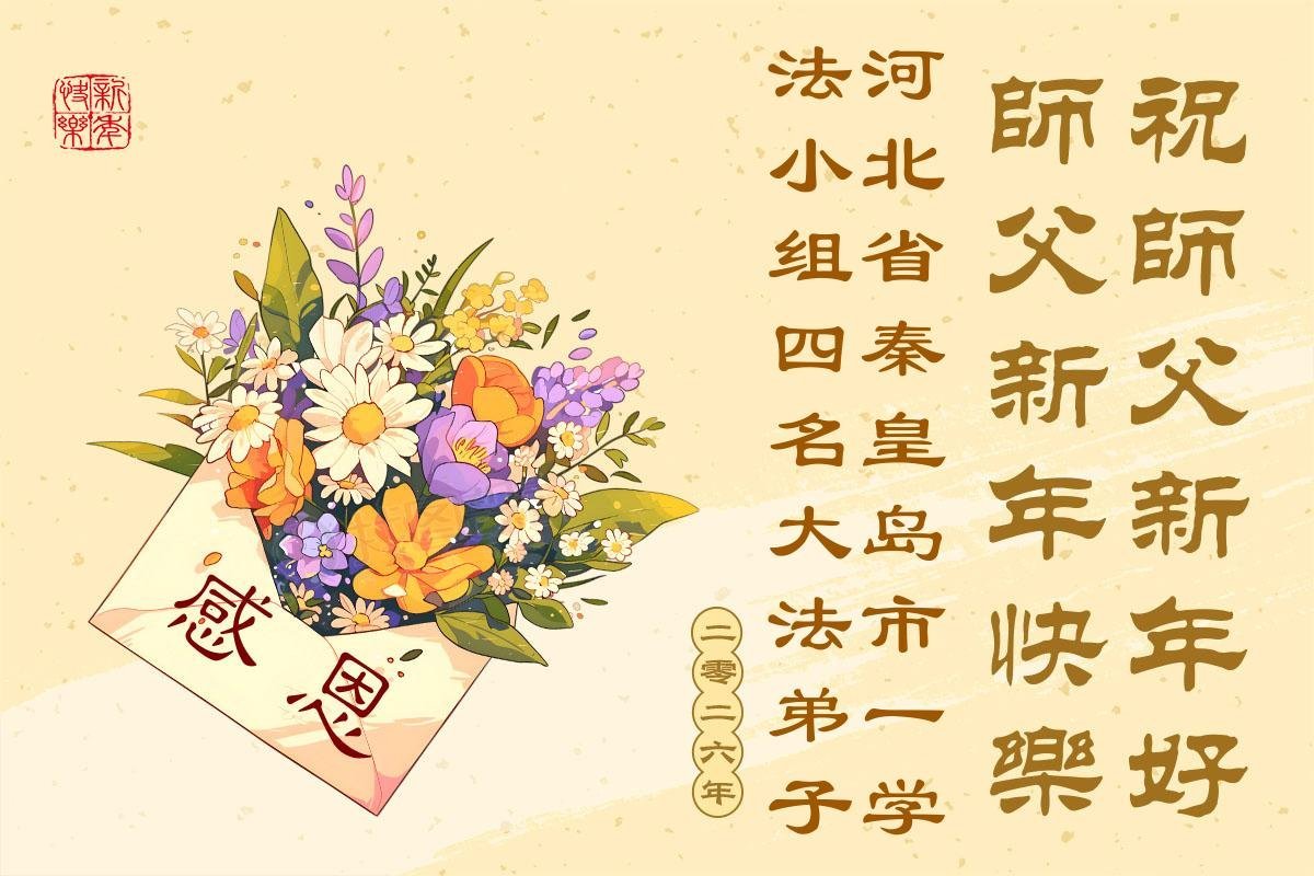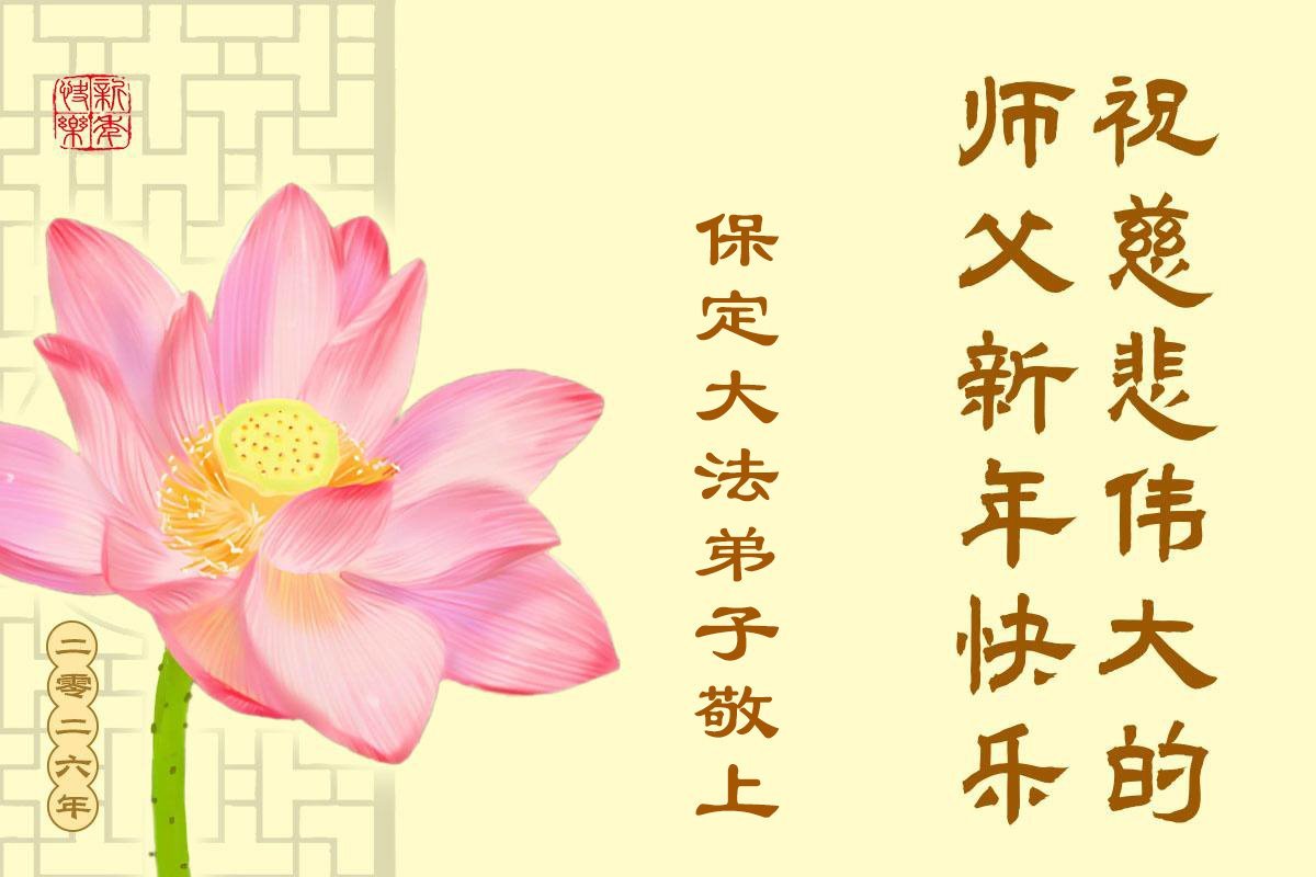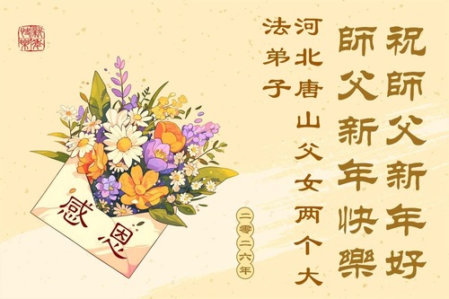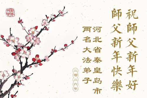 (Minghui.org) Zu Neujahr senden Falun-Dafa-Praktizierende auf der ganzen Welt traditionell Neujahrsgrüße, Grußkarten, Gedichte und Fotos an die Minghui-Website. Damit wünschen sie ihrem verehrten Meister Li Hongzhi ein frohes neues Jahr und bringen dem Meister ihre Dankbarkeit für die barmherzige Errettung zum Ausdruck. Sie geloben, in ihrer Kultivierung fleißig voranzukommen und noch mehr Lebewesen zu erretten. Im Folgenden veröffentlichen wir einen Teil dieser Grüße aus Hebei: