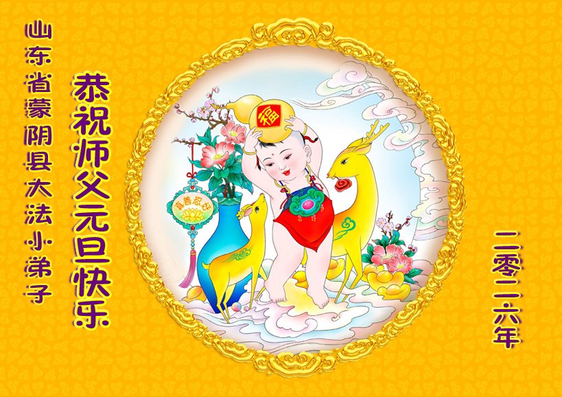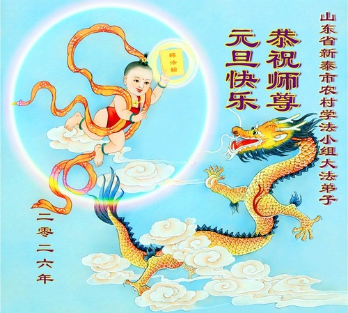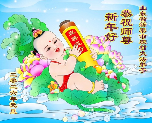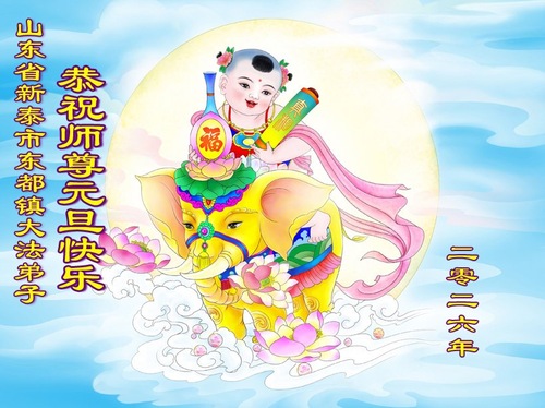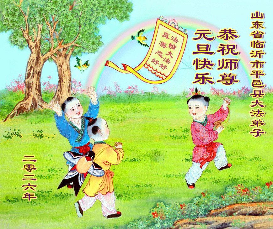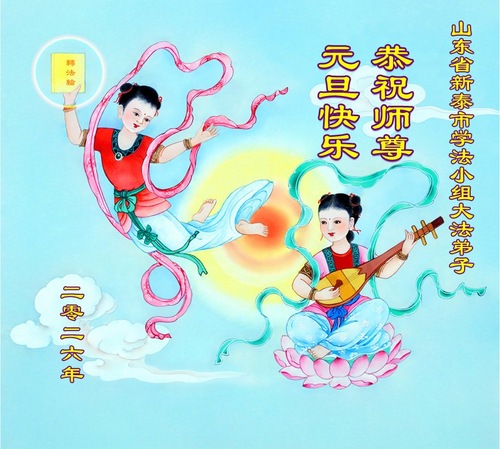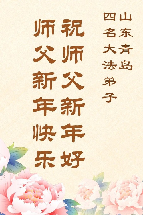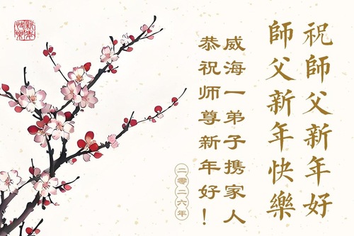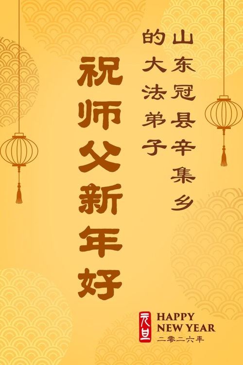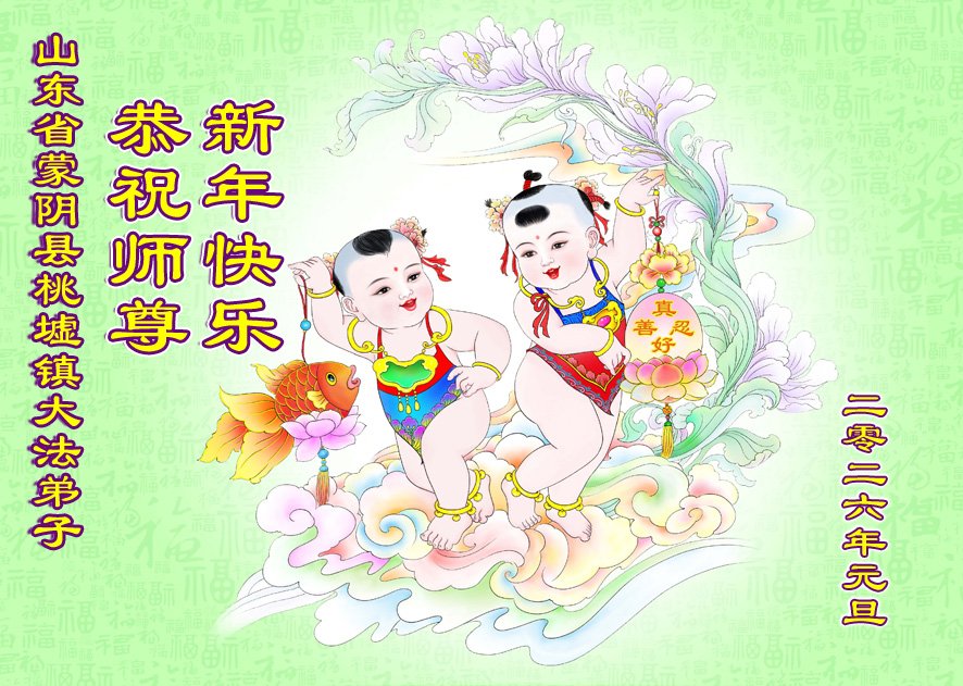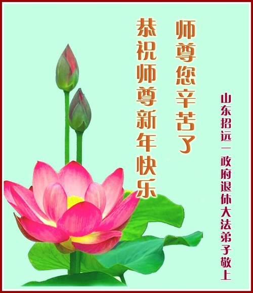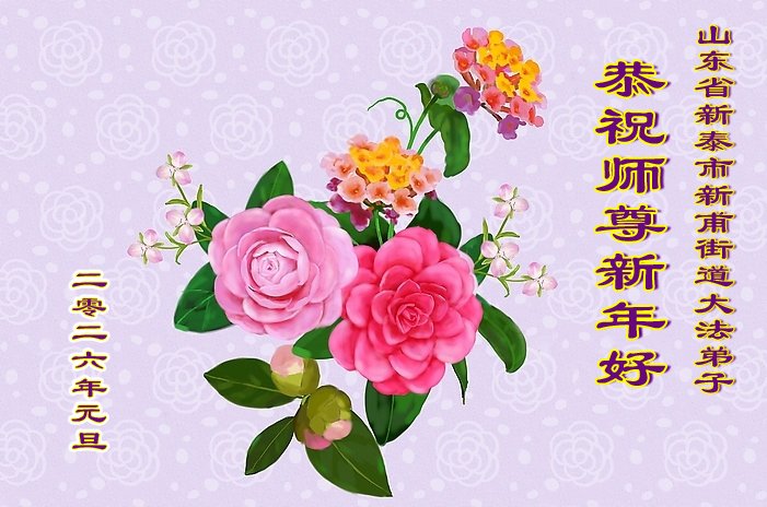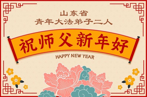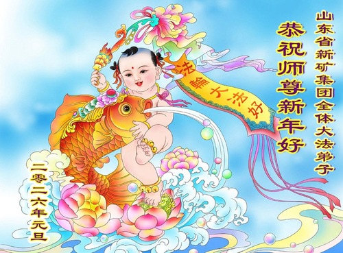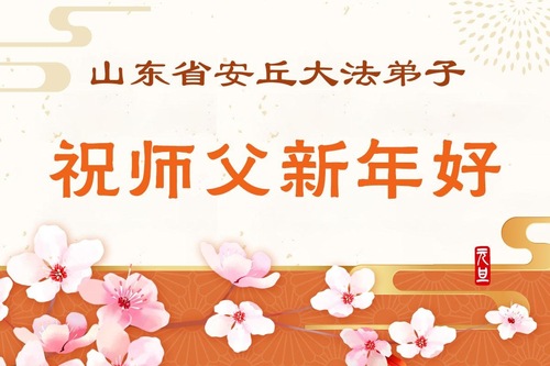 (Minghui.org) Zu Neujahr senden Falun-Dafa-Praktizierende auf der ganzen Welt traditionell Neujahrsgrüße, Grußkarten, Gedichte und Fotos an die Minghui-Website. Damit wünschen sie ihrem verehrten Meister Li Hongzhi ein frohes neues Jahr und bringen dem Meister ihre Dankbarkeit für die barmherzige Errettung zum Ausdruck. Sie geloben, in ihrer Kultivierung fleißig voranzukommen und noch mehr Lebewesen zu erretten. Im Folgenden veröffentlichen wir einen Teil dieser Grüße aus Shandong: