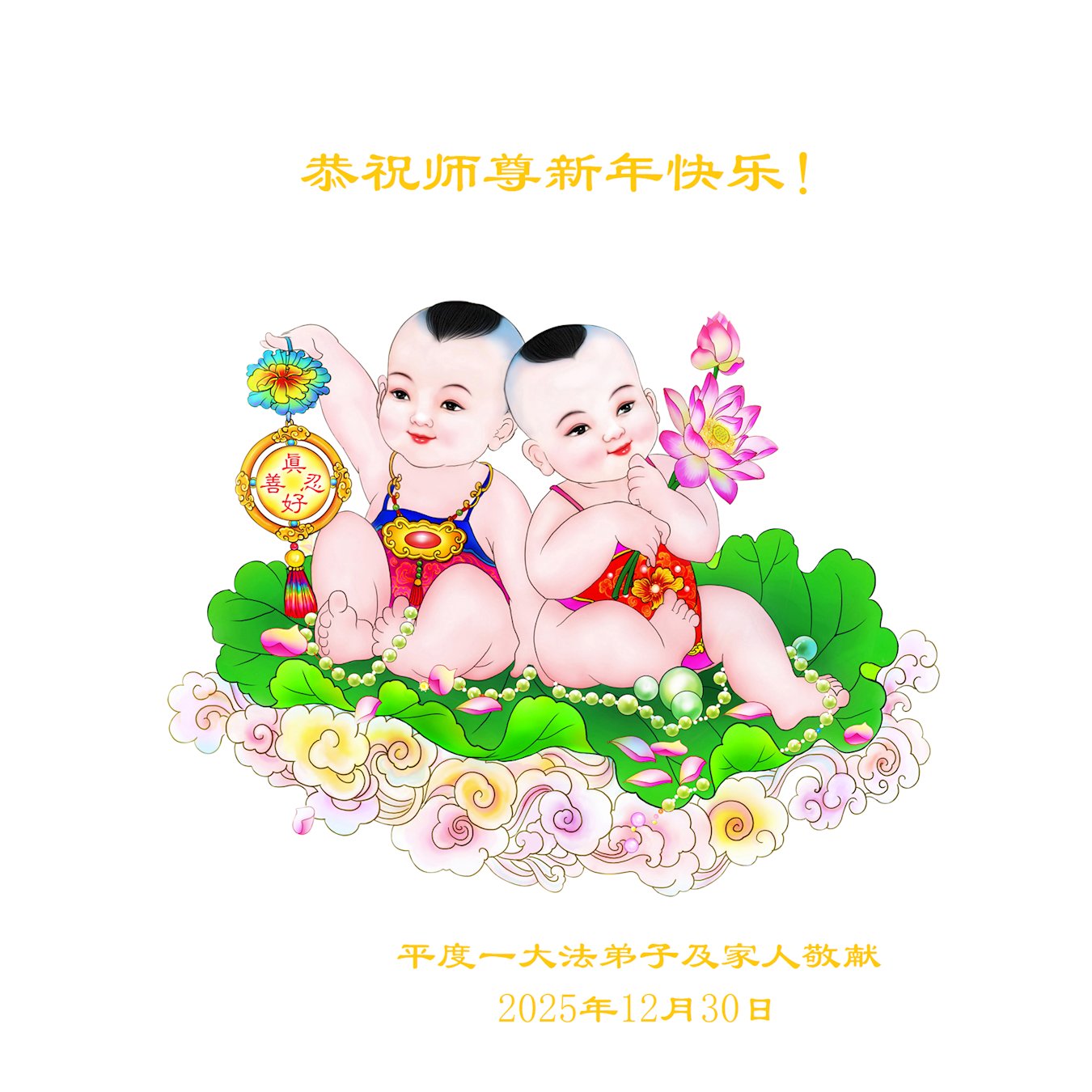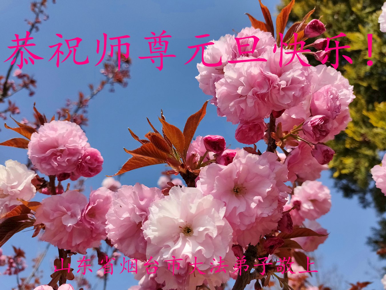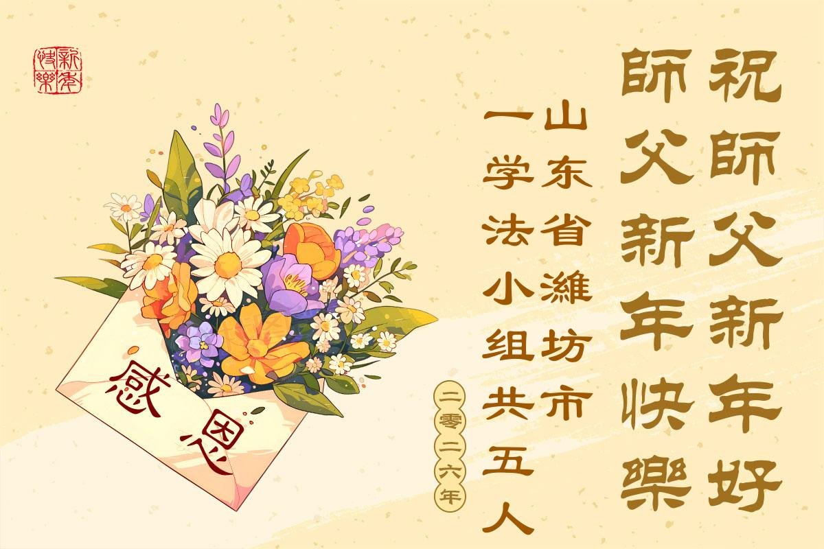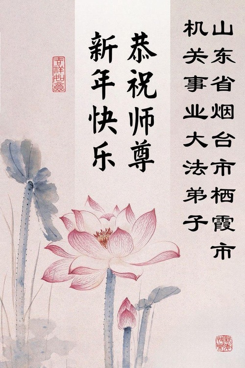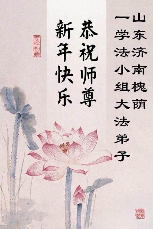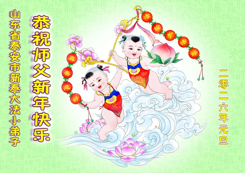 (Minghui.org) Zu Neujahr senden Falun-Dafa-Praktizierende auf der ganzen Welt traditionell Neujahrsgrüße, Grußkarten, Gedichte und Fotos an die Minghui-Website. Damit wünschen sie ihrem verehrten Meister Li Hongzhi ein frohes neues Jahr und bringen dem Meister ihre Dankbarkeit für die barmherzige Errettung zum Ausdruck. Sie geloben, in ihrer Kultivierung fleißig voranzukommen und noch mehr Lebewesen zu erretten. Im Folgenden veröffentlichen wir einen Teil dieser Grüße aus Shandong: