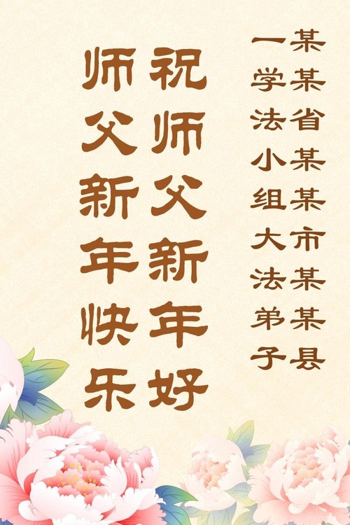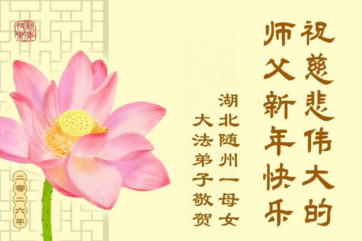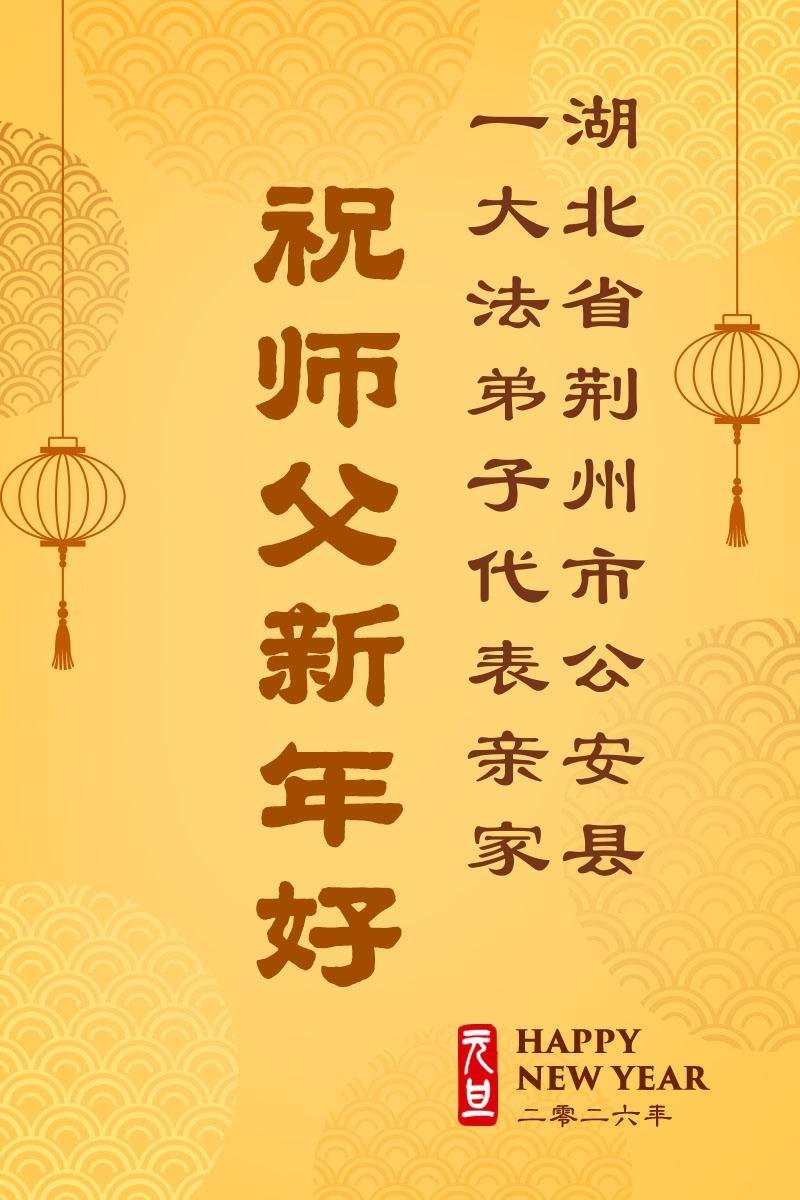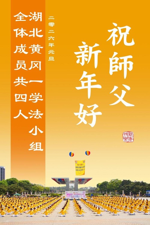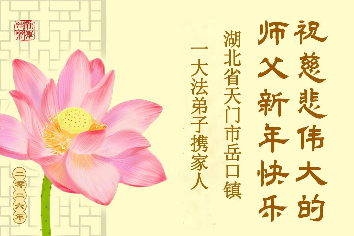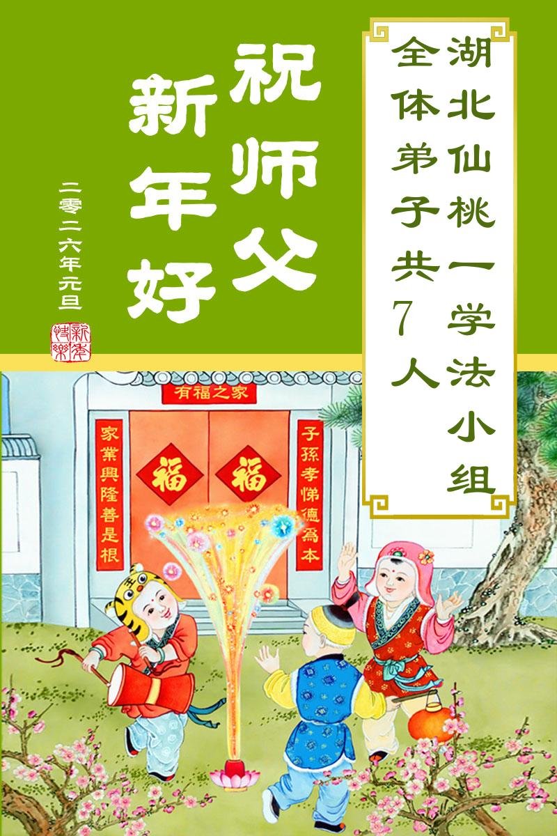 (Minghui.org) Zu Neujahr senden Falun-Dafa-Praktizierende auf der ganzen Welt traditionell Neujahrsgrüße, Grußkarten, Gedichte und Fotos an die Minghui-Website. Damit wünschen sie ihrem verehrten Meister Li Hongzhi ein frohes neues Jahr und bringen dem Meister ihre Dankbarkeit für die barmherzige Errettung zum Ausdruck. Sie geloben, in ihrer Kultivierung fleißig voranzukommen und noch mehr Lebewesen zu erretten. Im Folgenden veröffentlichen wir einen Teil dieser Grüße aus der Provinz Hubei: