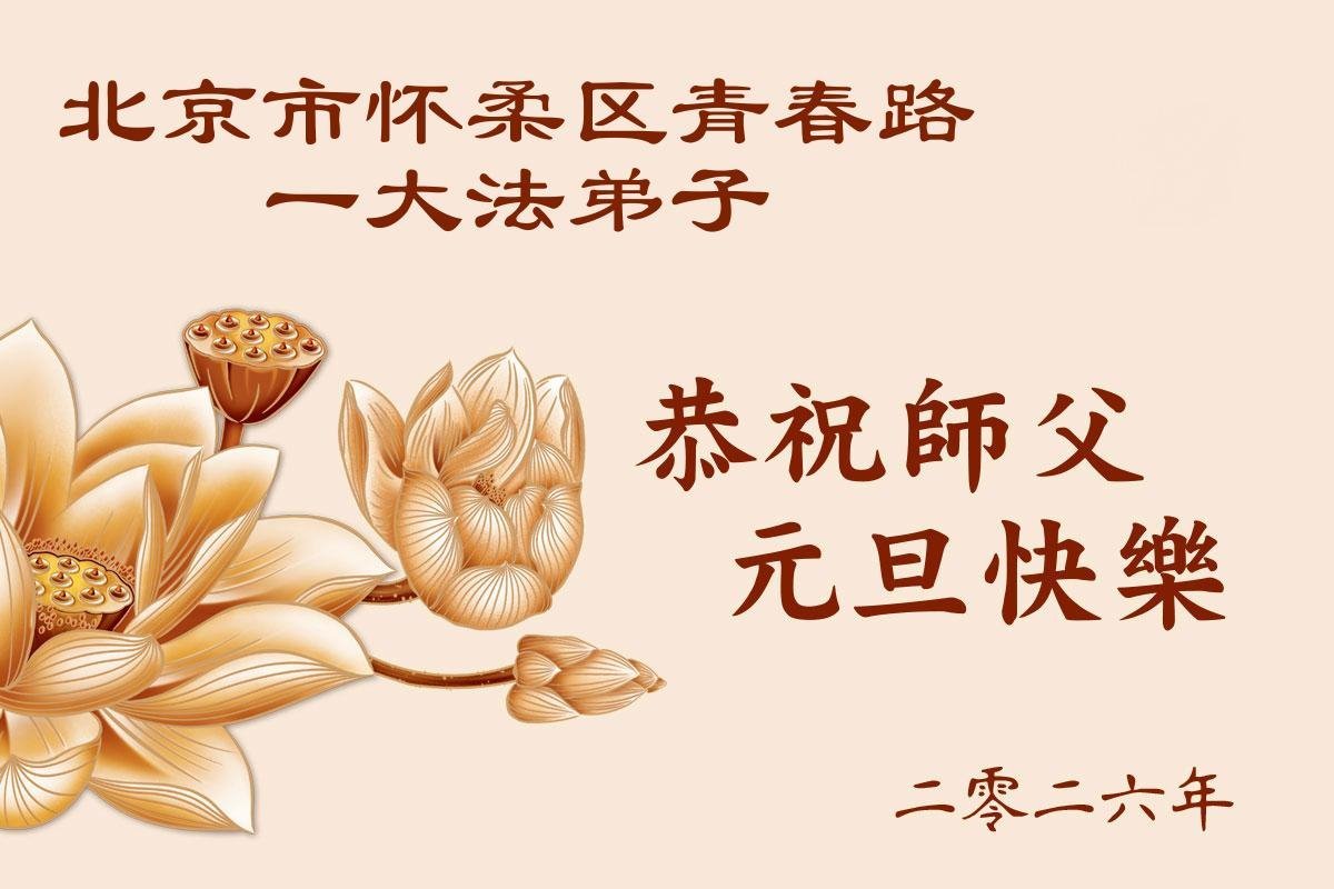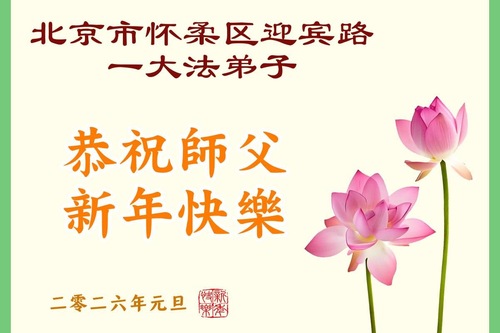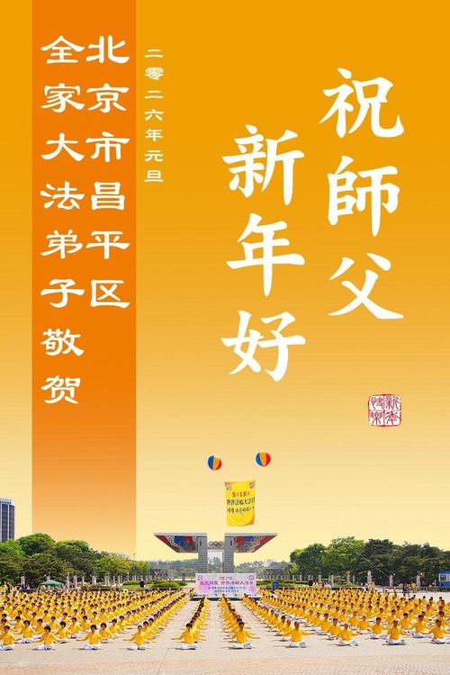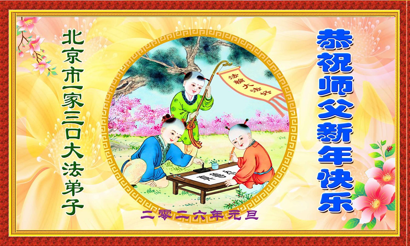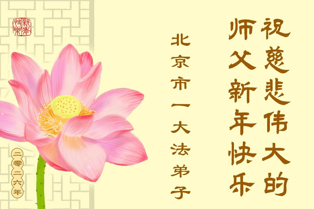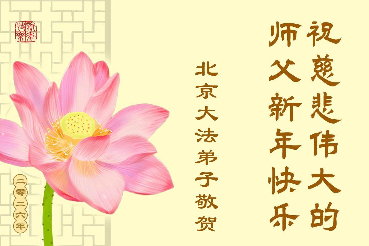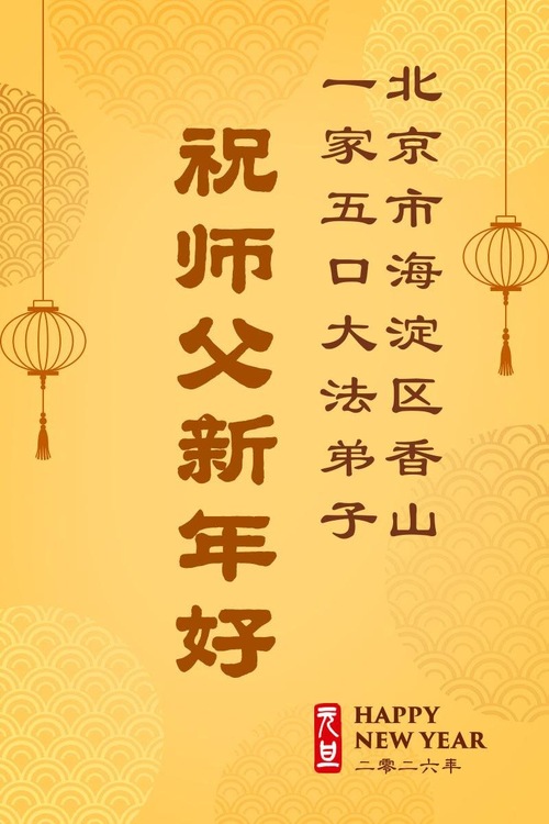 (Minghui.org) Zu Neujahr senden Falun-Dafa-Praktizierende auf der ganzen Welt traditionell Neujahrsgrüße, Grußkarten, Gedichte und Fotos an die Minghui-Website. Damit wünschen sie ihrem verehrten Meister Li Hongzhi ein frohes neues Jahr und bringen dem Meister ihre Dankbarkeit für die barmherzige Errettung zum Ausdruck. Sie geloben, in ihrer Kultivierung fleißig voranzukommen und noch mehr Lebewesen zu erretten. Im Folgenden veröffentlichen wir einen Teil dieser Grüße aus Peking: