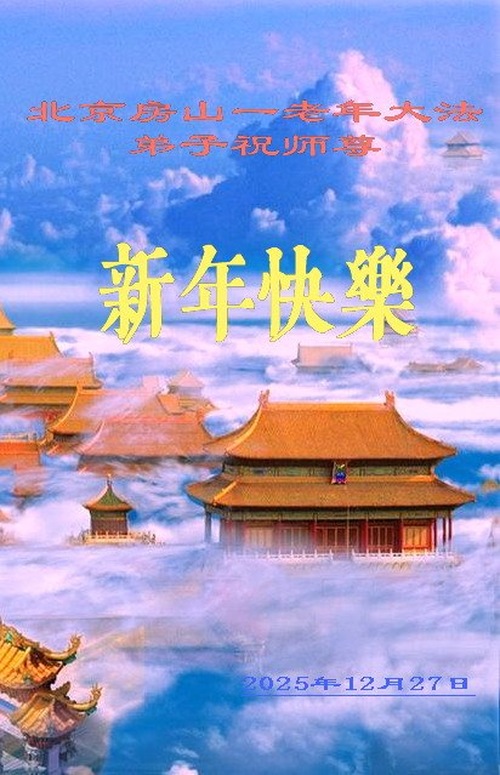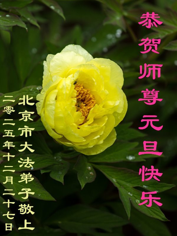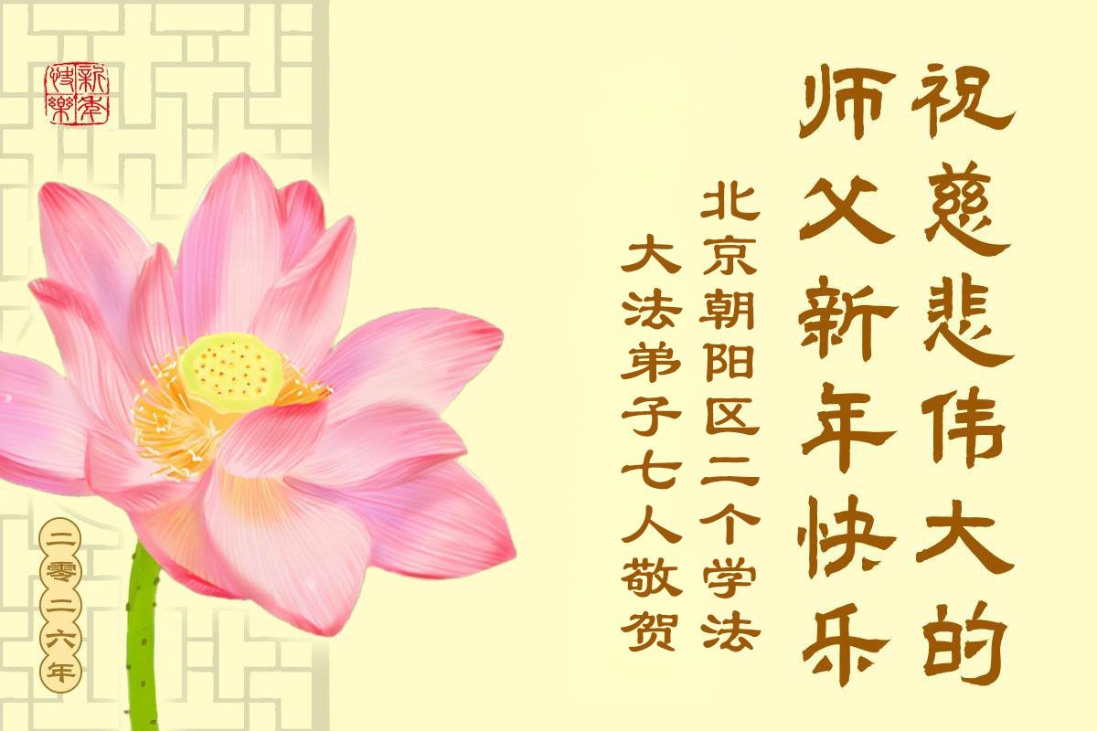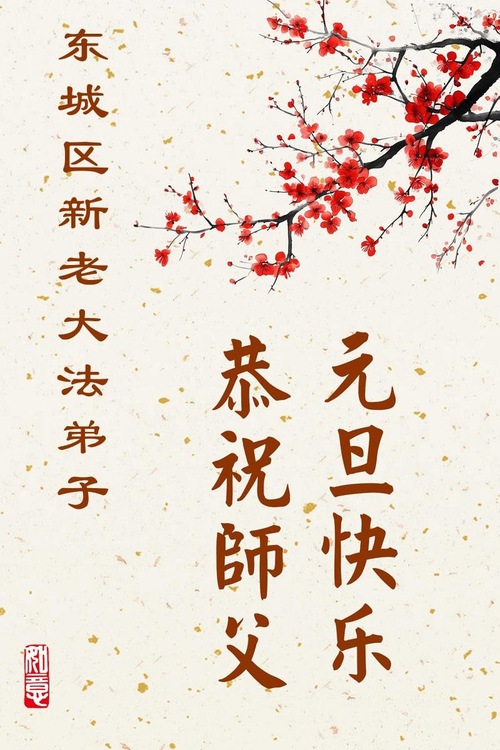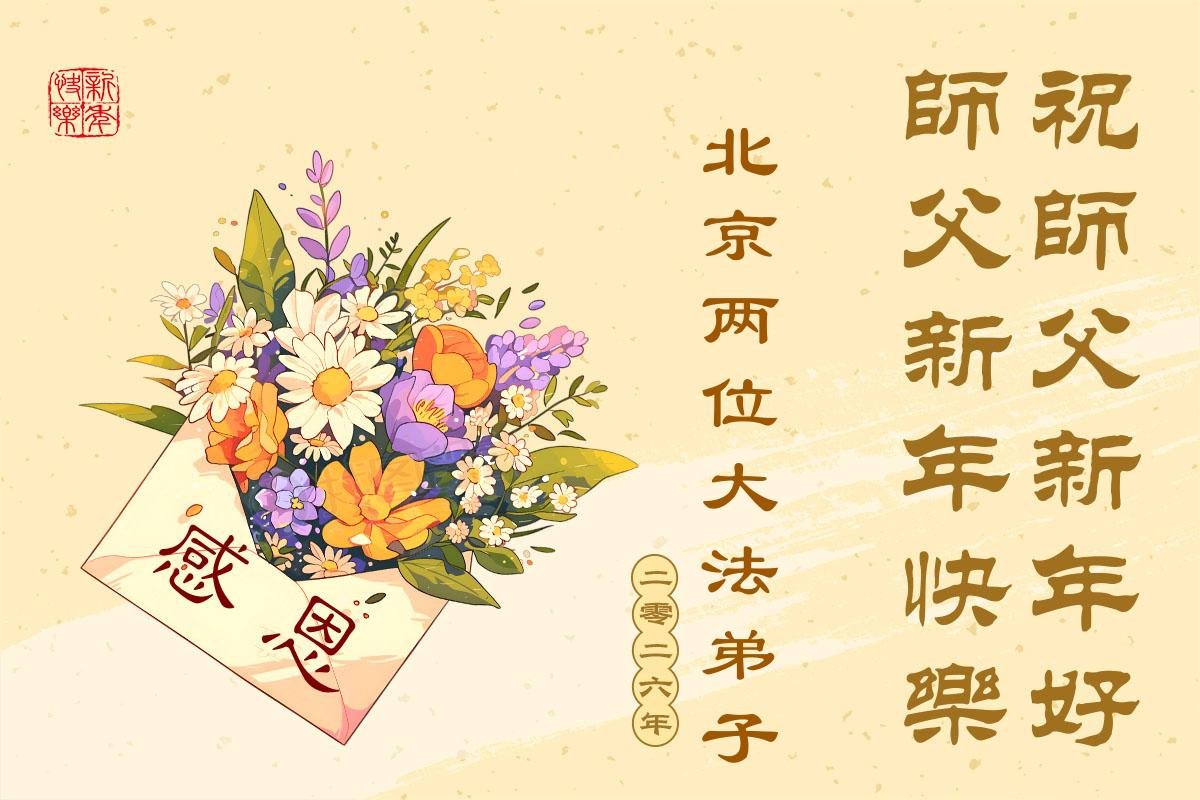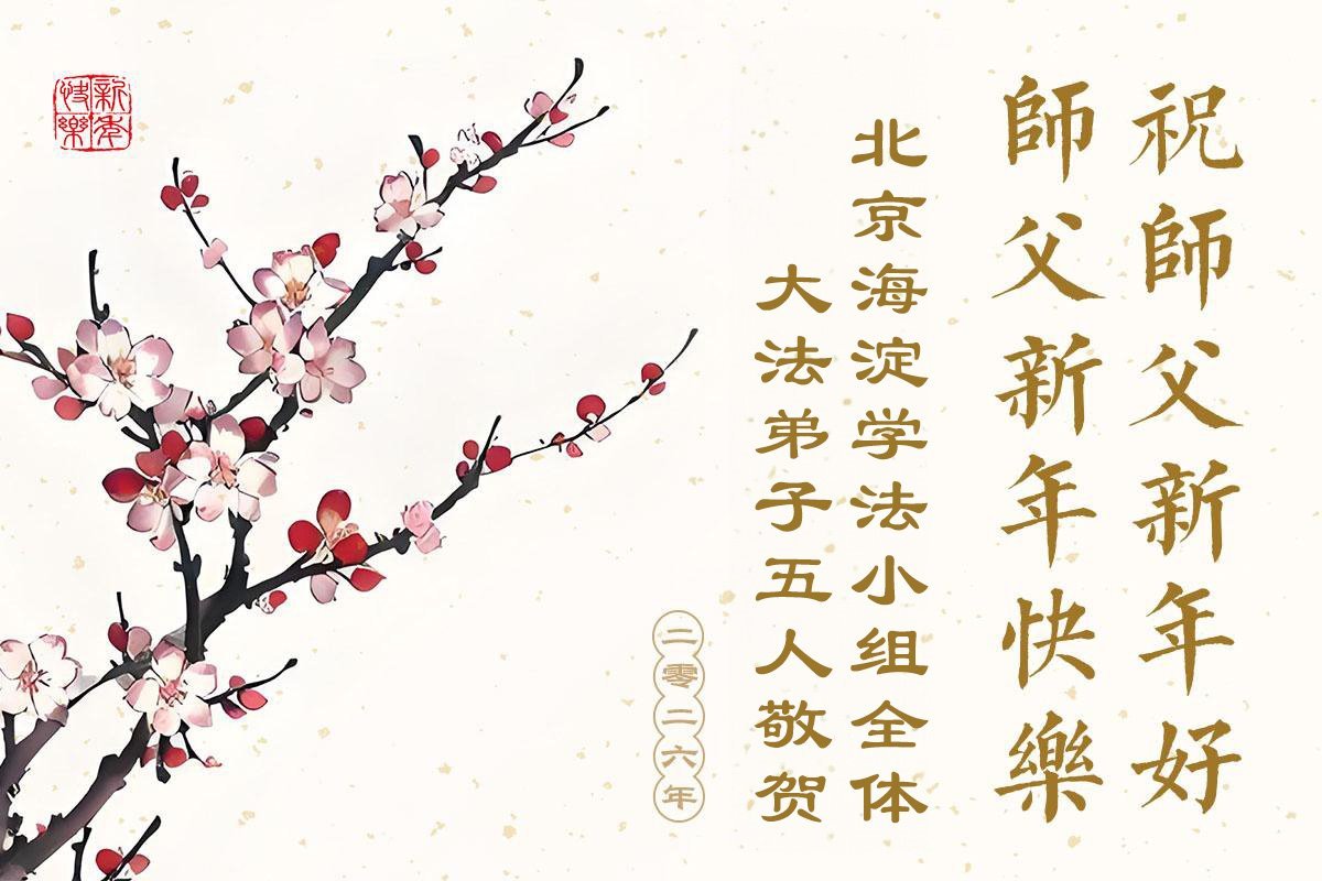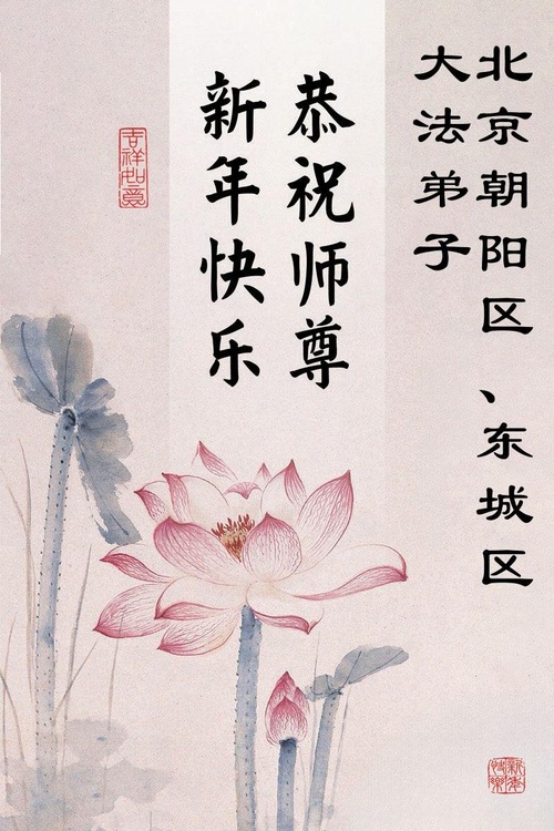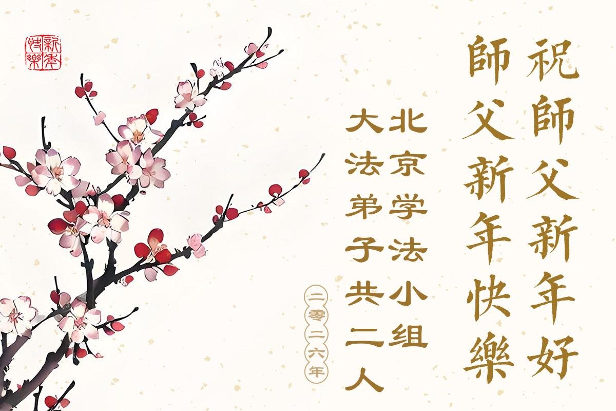 (Minghui.org) Zu Neujahr senden Falun-Dafa-Praktizierende auf der ganzen Welt traditionell Neujahrsgrüße, Grußkarten, Gedichte und Fotos an die Minghui-Website. Damit wünschen sie ihrem verehrten Meister Li Hongzhi ein frohes neues Jahr und bringen dem Meister ihre Dankbarkeit für die barmherzige Errettung zum Ausdruck. Sie geloben, in ihrer Kultivierung fleißig voranzukommen und noch mehr Lebewesen zu erretten. Im Folgenden veröffentlichen wir einen Teil dieser Grüße aus Peking:
