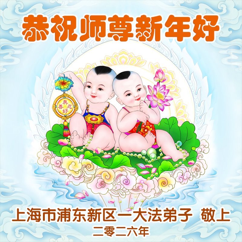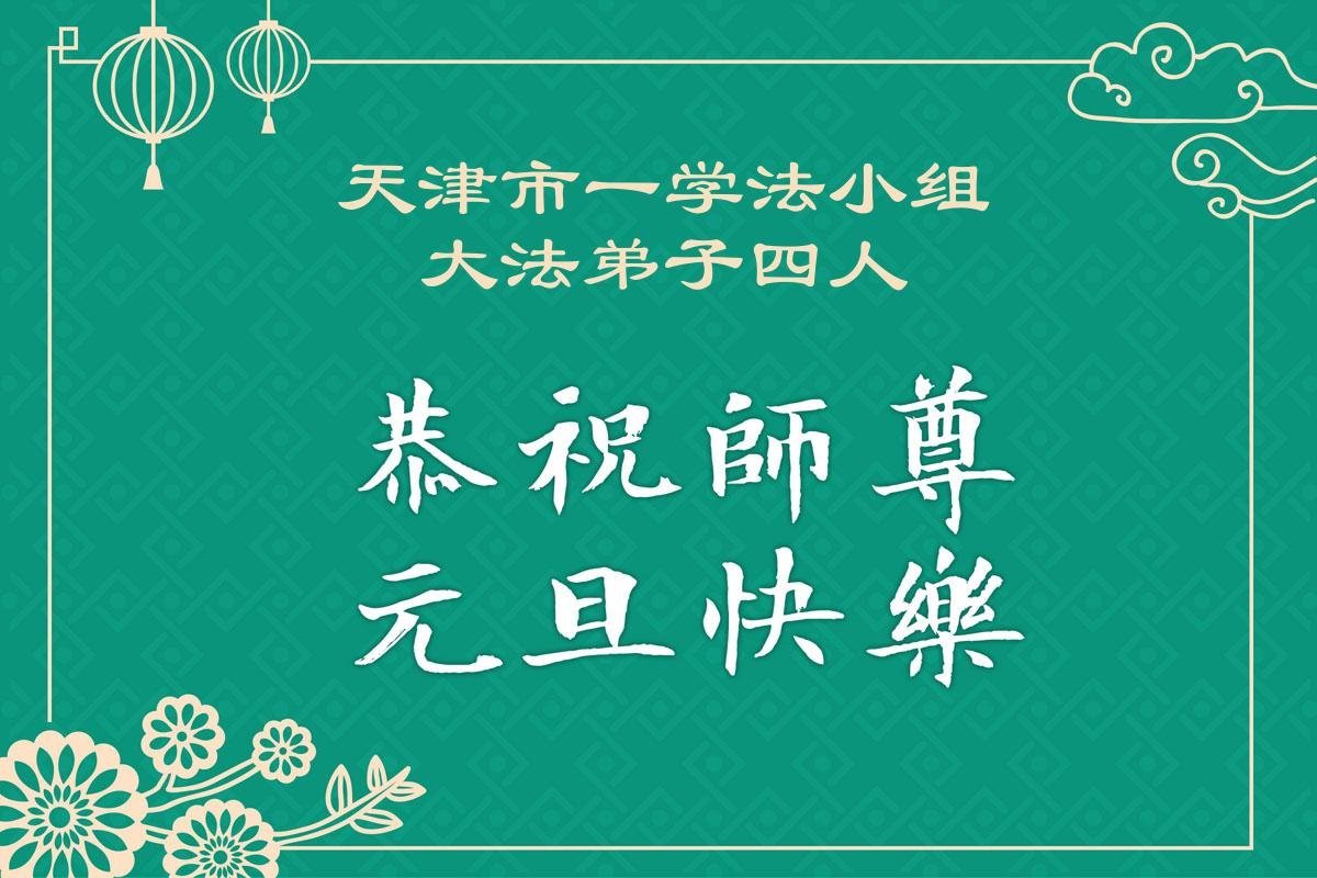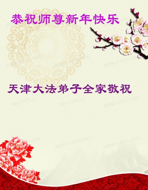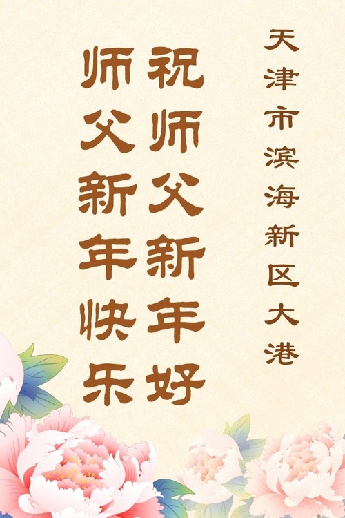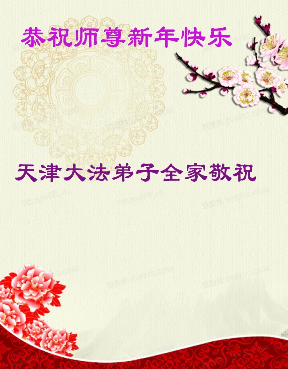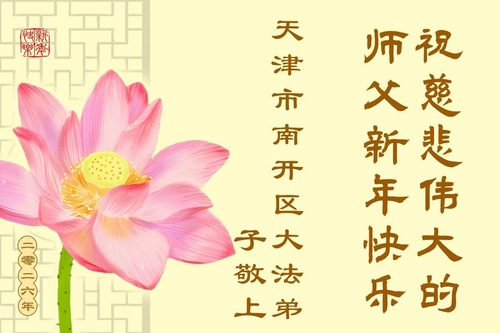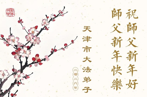 (Minghui.org) Zu Neujahr senden Falun-Dafa-Praktizierende auf der ganzen Welt traditionell Neujahrsgrüße, Grußkarten, Gedichte und Fotos an die Minghui-Website. Damit wünschen sie ihrem verehrten Meister Li Hongzhi ein frohes neues Jahr und bringen dem Meister ihre Dankbarkeit für die barmherzige Errettung zum Ausdruck. Sie geloben, in ihrer Kultivierung fleißig voranzukommen und noch mehr Lebewesen zu erretten. Im Folgenden veröffentlichen wir einen Teil dieser Grüße aus den zwei Städten Tianjin und Shanghai: