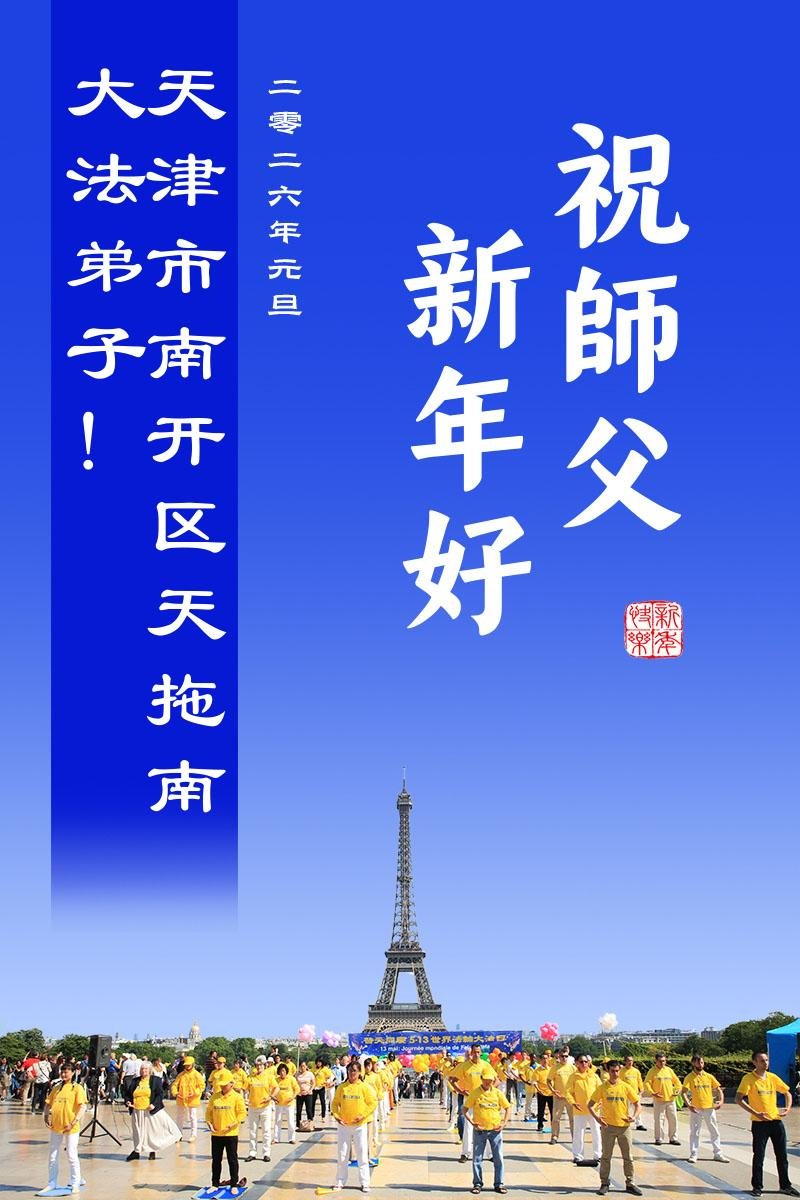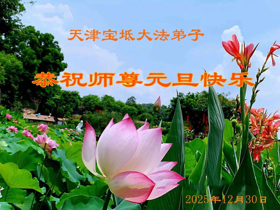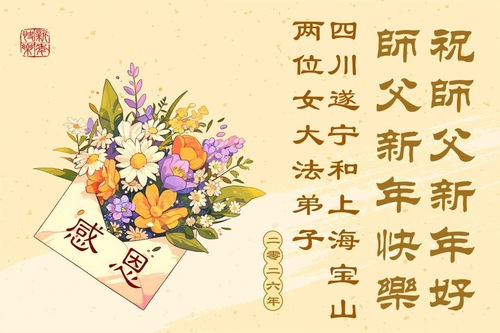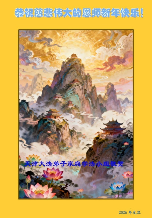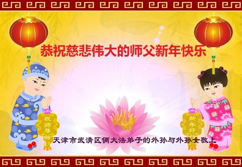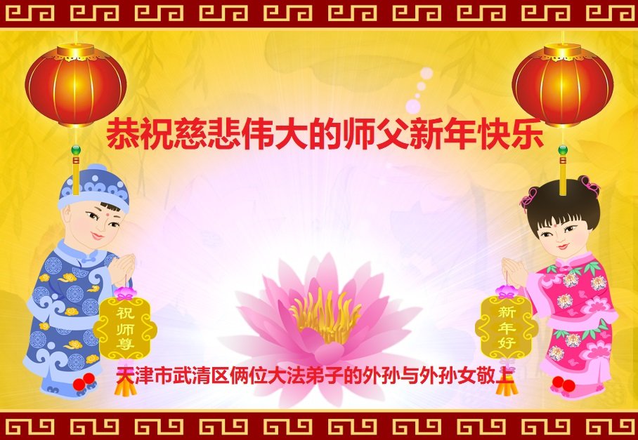 (Minghui.org) Zu Neujahr senden Falun-Dafa-Praktizierende auf der ganzen Welt traditionell Neujahrsgrüße, Grußkarten, Gedichte und Fotos an die Minghui-Website. Damit wünschen sie ihrem verehrten Meister Li Hongzhi ein frohes neues Jahr und bringen dem Meister ihre Dankbarkeit für die barmherzige Errettung zum Ausdruck. Sie geloben, in ihrer Kultivierung fleißig voranzukommen und noch mehr Lebewesen zu erretten. Im Folgenden veröffentlichen wir einen Teil dieser Grüße aus den zwei Städten Tianjin und Shanghai: