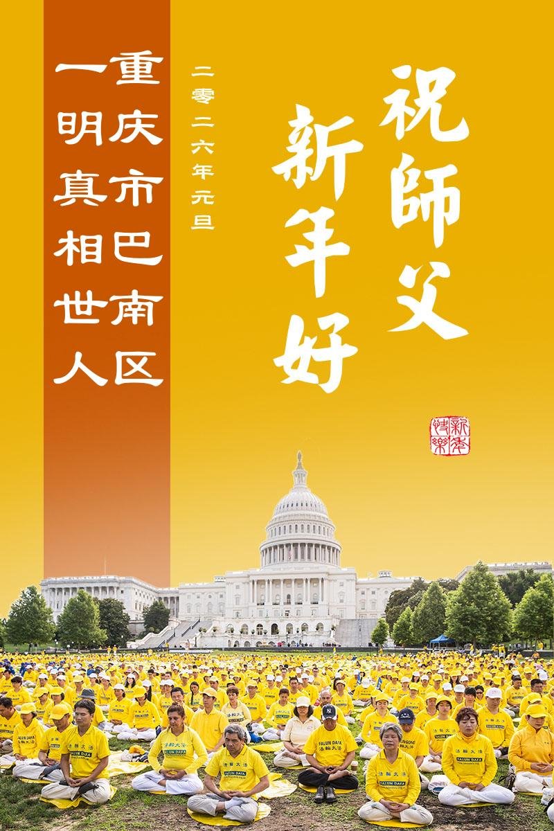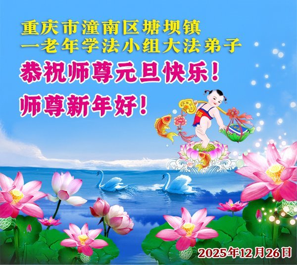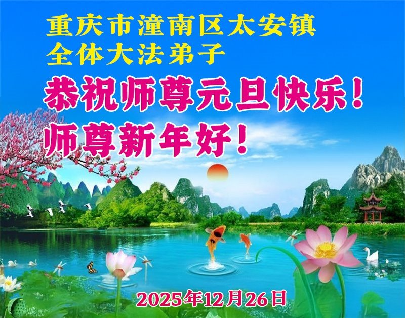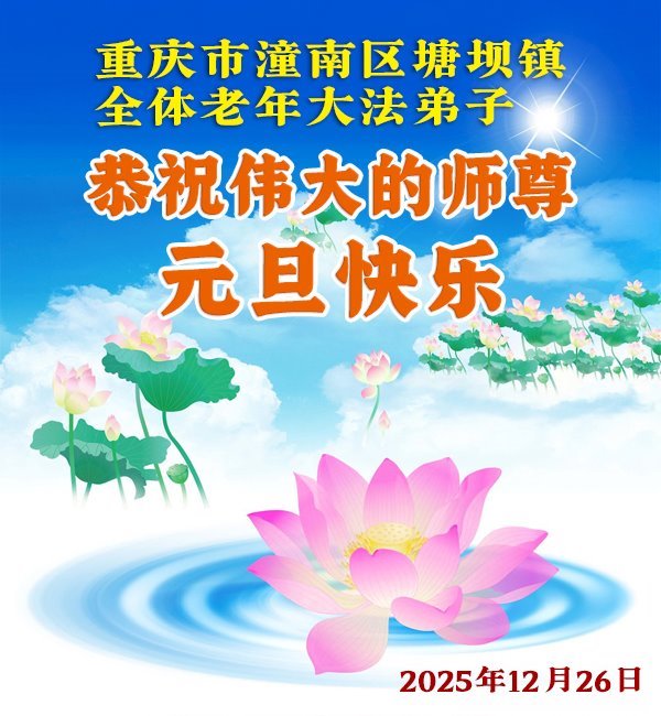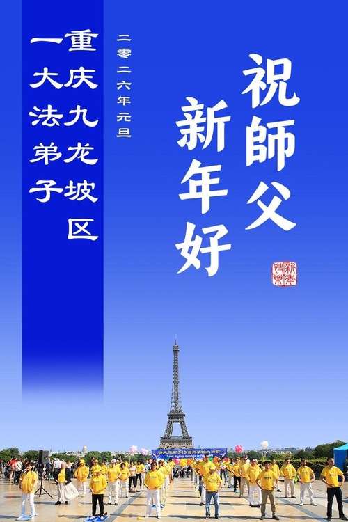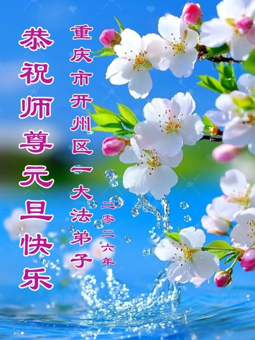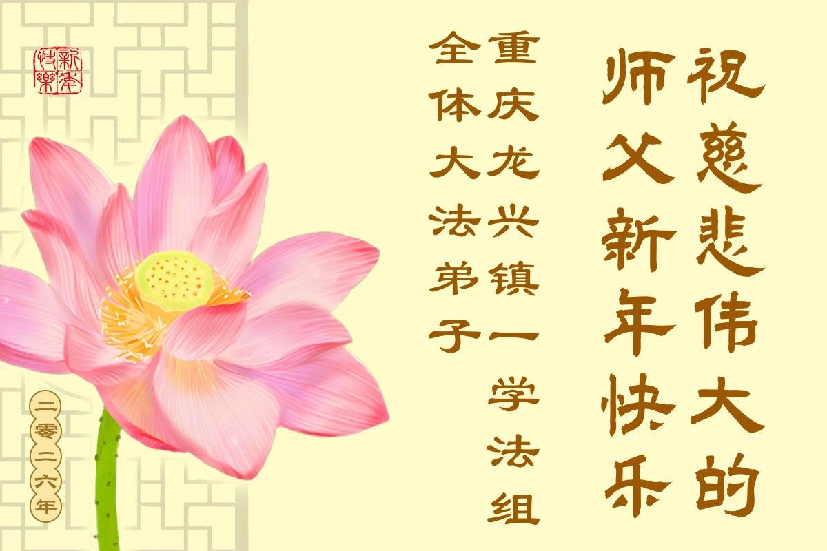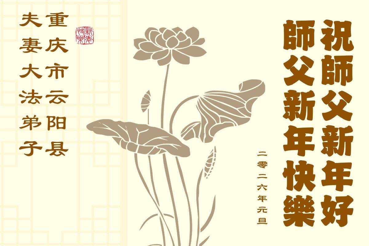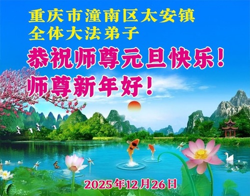 (Minghui.org) Zu Neujahr senden Falun-Dafa-Praktizierende auf der ganzen Welt traditionell Neujahrsgrüße, Grußkarten, Gedichte und Fotos an die Minghui-Website. Damit wünschen sie ihrem verehrten Meister Li Hongzhi ein frohes neues Jahr und bringen dem Meister ihre Dankbarkeit für die barmherzige Errettung zum Ausdruck. Sie geloben, in ihrer Kultivierung fleißig voranzukommen und noch mehr Lebewesen zu erretten. Im Folgenden veröffentlichen wir einen Teil dieser Grüße aus der Stadt Chongqing: