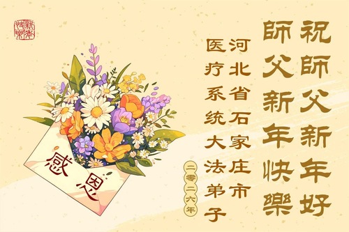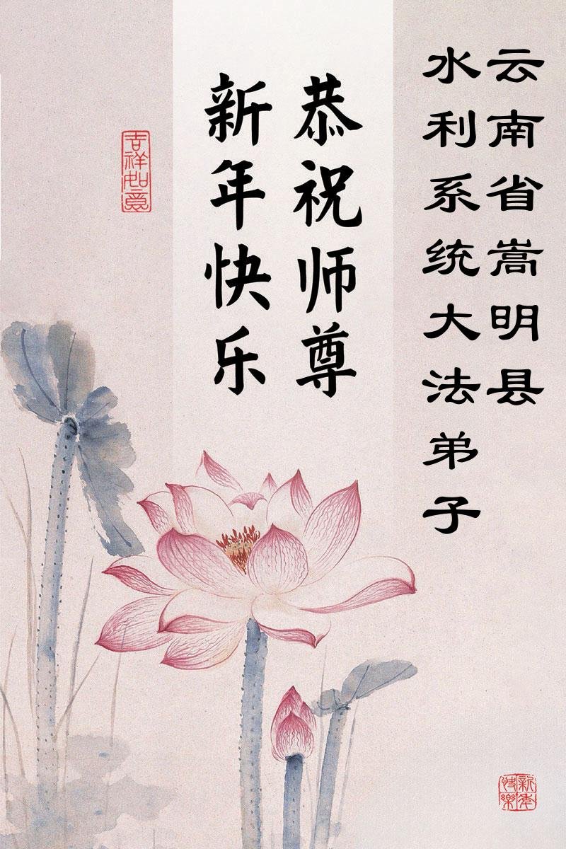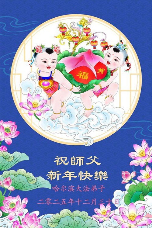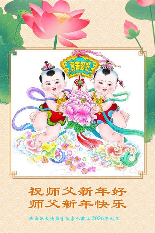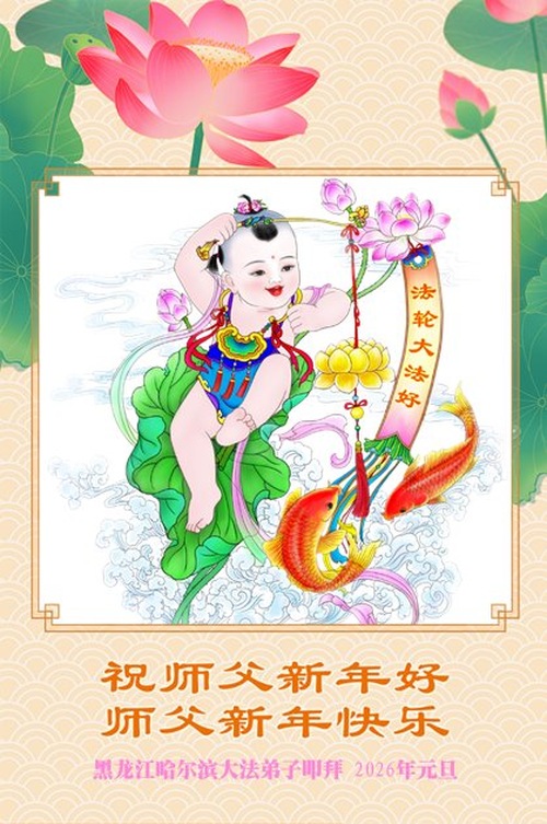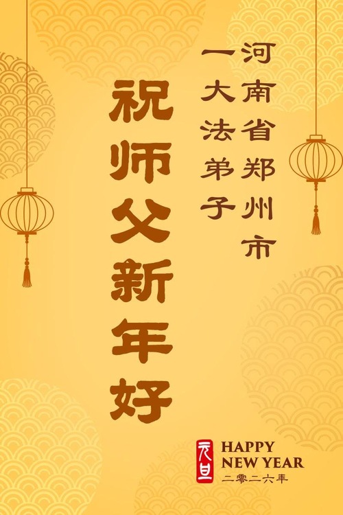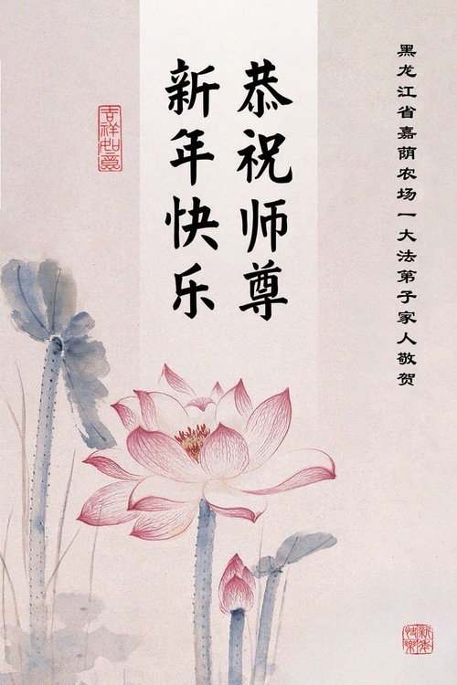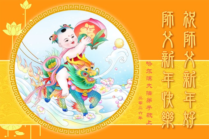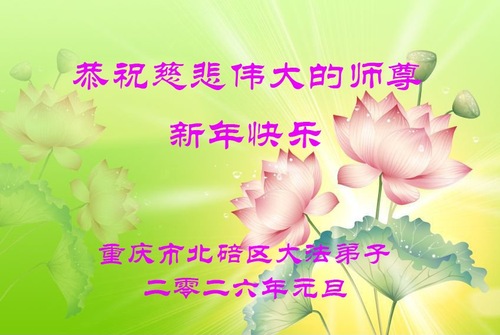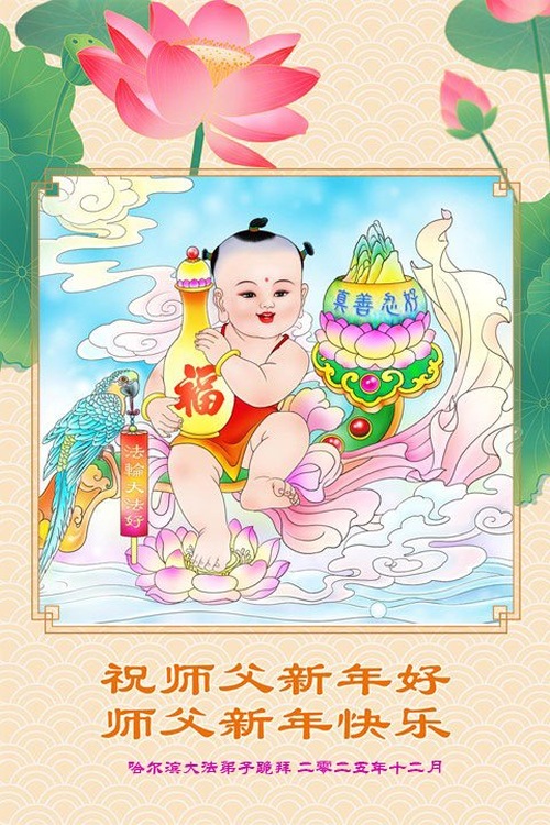 (Minghui.org) Zu Neujahr senden Falun-Dafa-Praktizierende auf der ganzen Welt traditionell Neujahrsgrüße, Grußkarten, Gedichte und Fotos an die Minghui-Website. Damit wünschen sie ihrem verehrten Meister Li Hongzhi ein frohes neues Jahr und bringen dem Meister ihre Dankbarkeit für die barmherzige Errettung zum Ausdruck. Sie geloben, in ihrer Kultivierung fleißig voranzukommen und noch mehr Lebewesen zu erretten. Im Folgenden veröffentlichen wir einen Teil dieser Grüße aus Festlandchina: