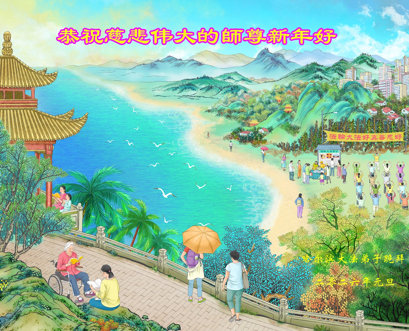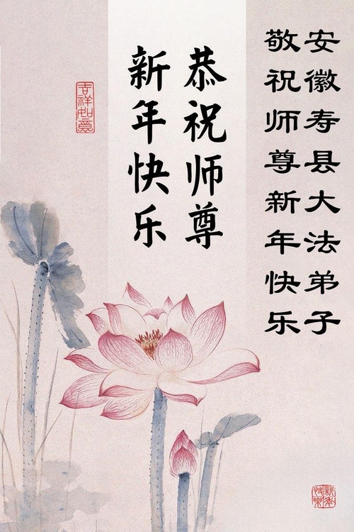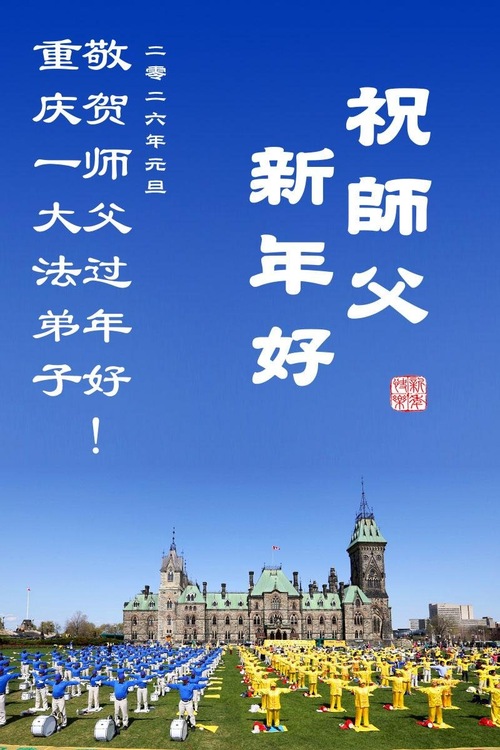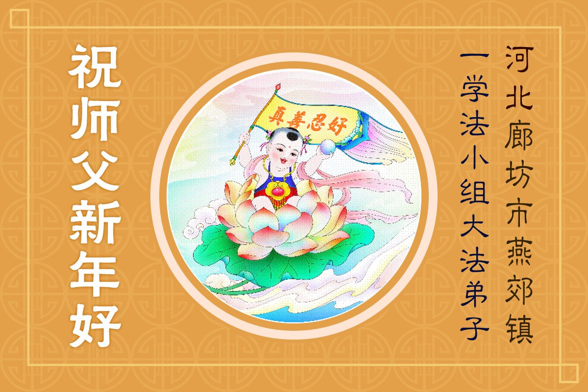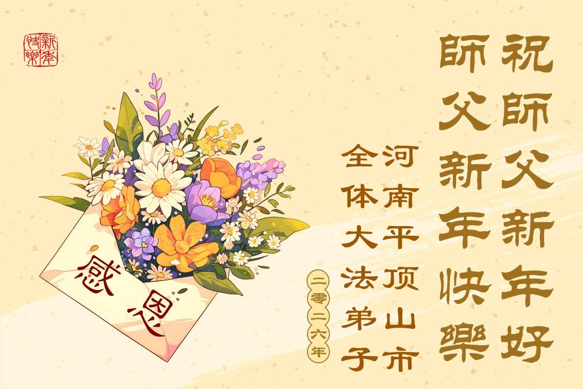 (Minghui.org) Zu Neujahr senden Falun-Dafa-Praktizierende auf der ganzen Welt traditionell Neujahrsgrüße, Grußkarten, Gedichte und Fotos an die Minghui-Website. Damit wünschen sie ihrem verehrten Meister Li Hongzhi ein frohes neues Jahr und bringen dem Meister ihre Dankbarkeit für die barmherzige Errettung zum Ausdruck. Sie geloben, in ihrer Kultivierung fleißig voranzukommen und noch mehr Lebewesen zu erretten. Im Folgenden veröffentlichen wir einen Teil dieser Grüße aus Festlandchina:
