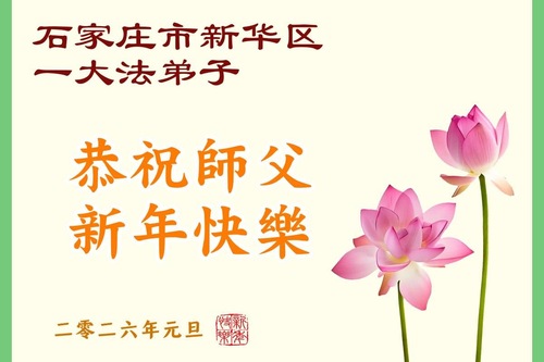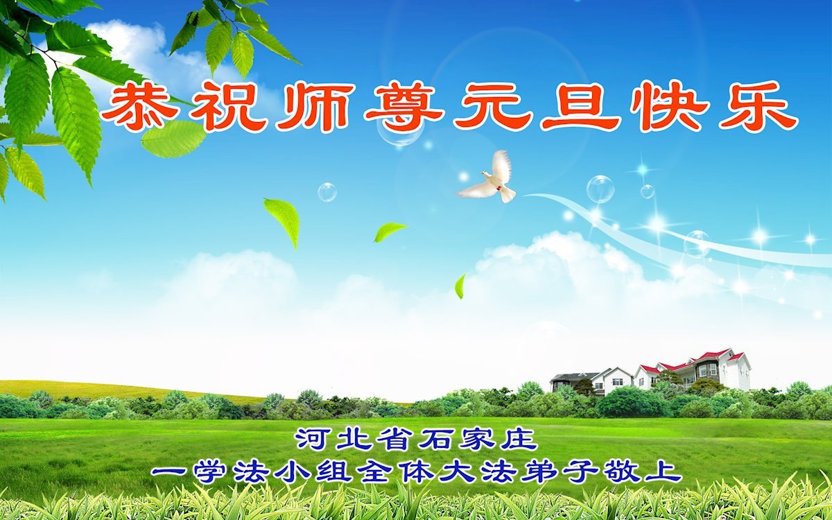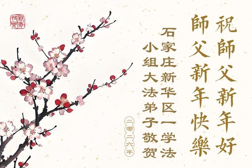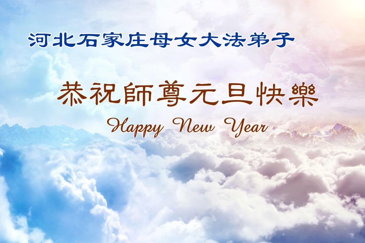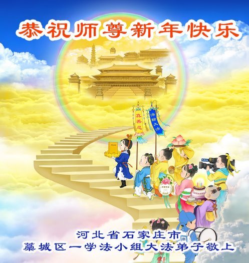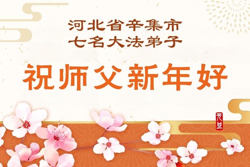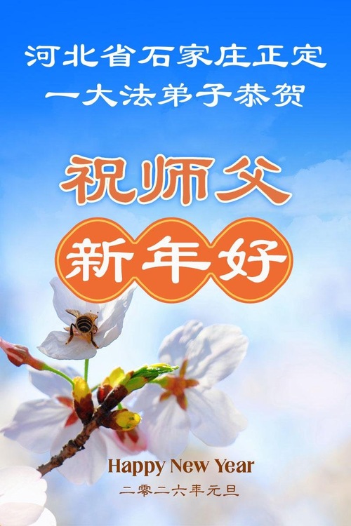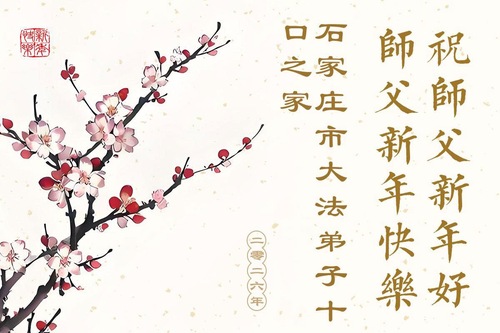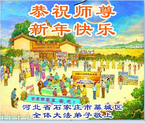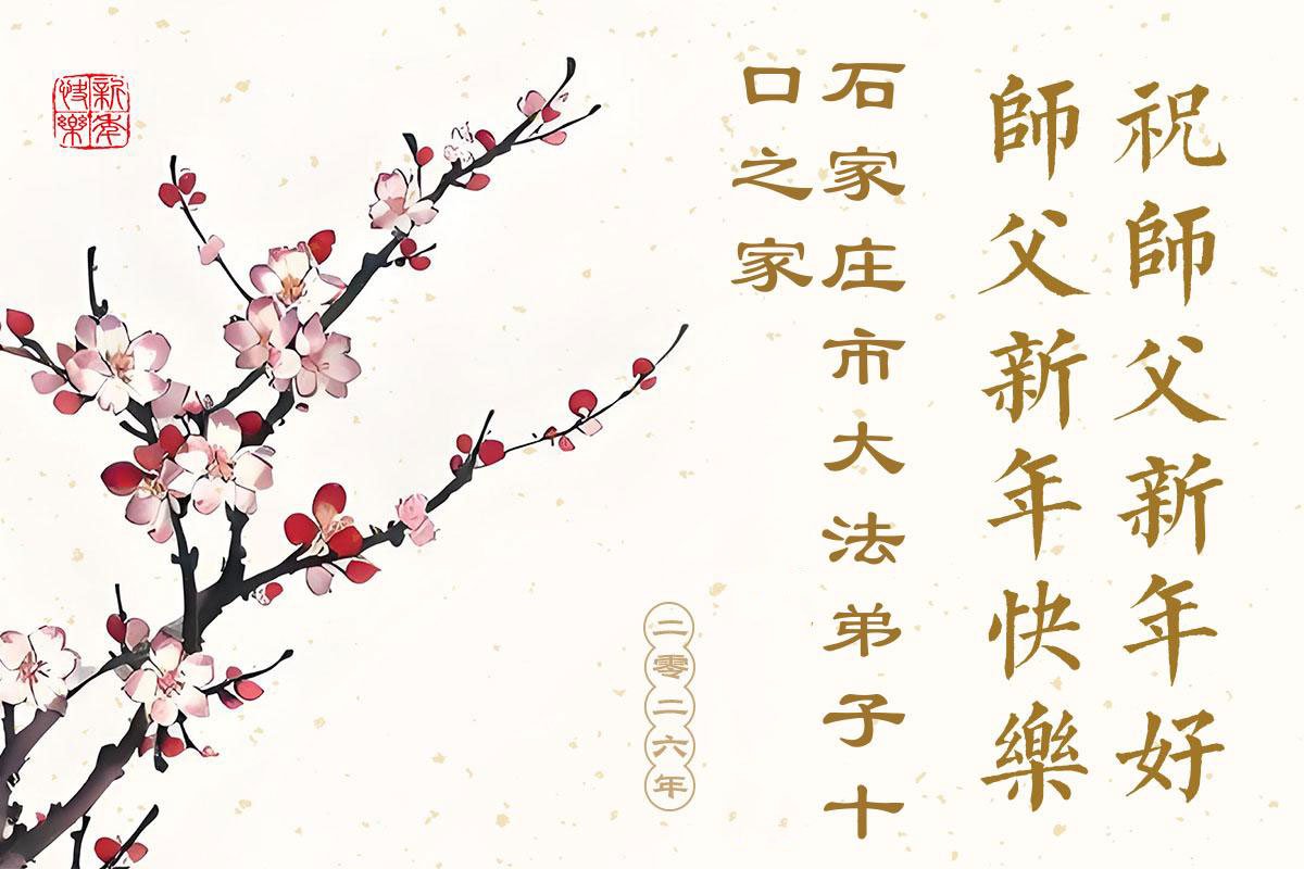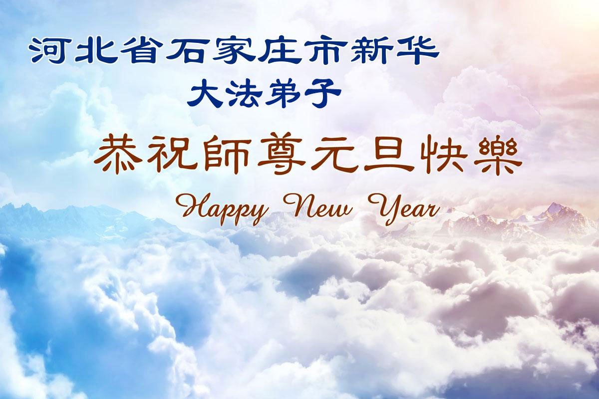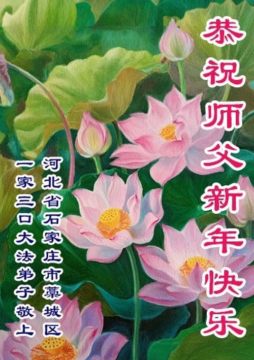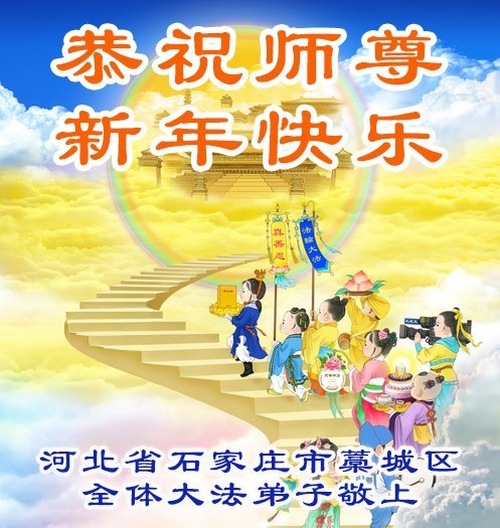 (Minghui.org) Zu Neujahr senden Falun-Dafa-Praktizierende auf der ganzen Welt traditionell Neujahrsgrüße, Grußkarten, Gedichte und Fotos an die Minghui-Website. Damit wünschen sie ihrem verehrten Meister Li Hongzhi ein frohes neues Jahr und bringen dem Meister ihre Dankbarkeit für die barmherzige Errettung zum Ausdruck. Sie geloben, in ihrer Kultivierung fleißig voranzukommen und noch mehr Lebewesen zu erretten. Im Folgenden veröffentlichen wir einen Teil dieser Grüße aus Shijiazhuang: