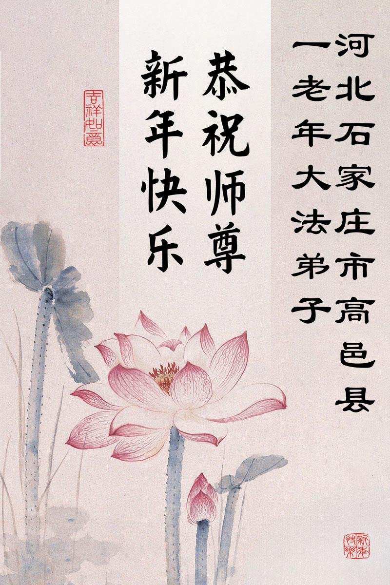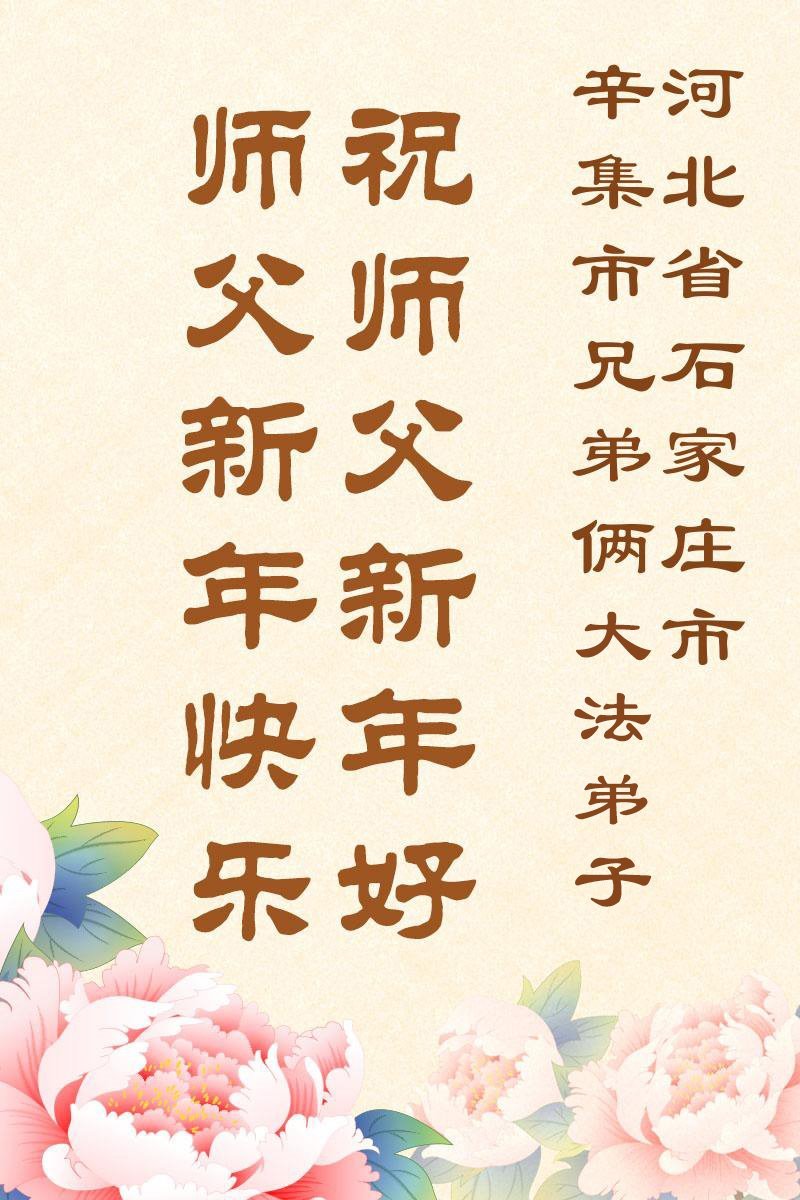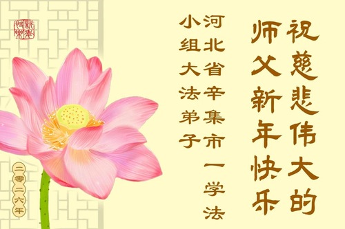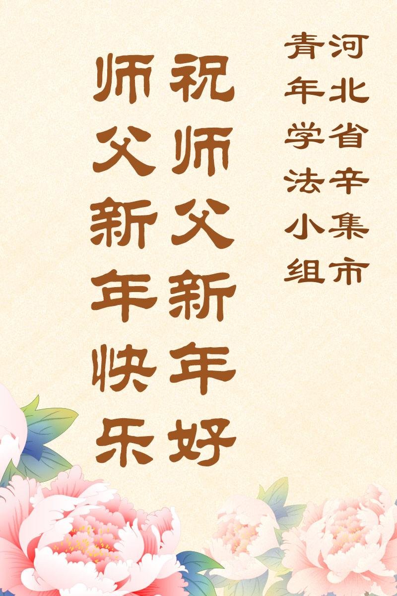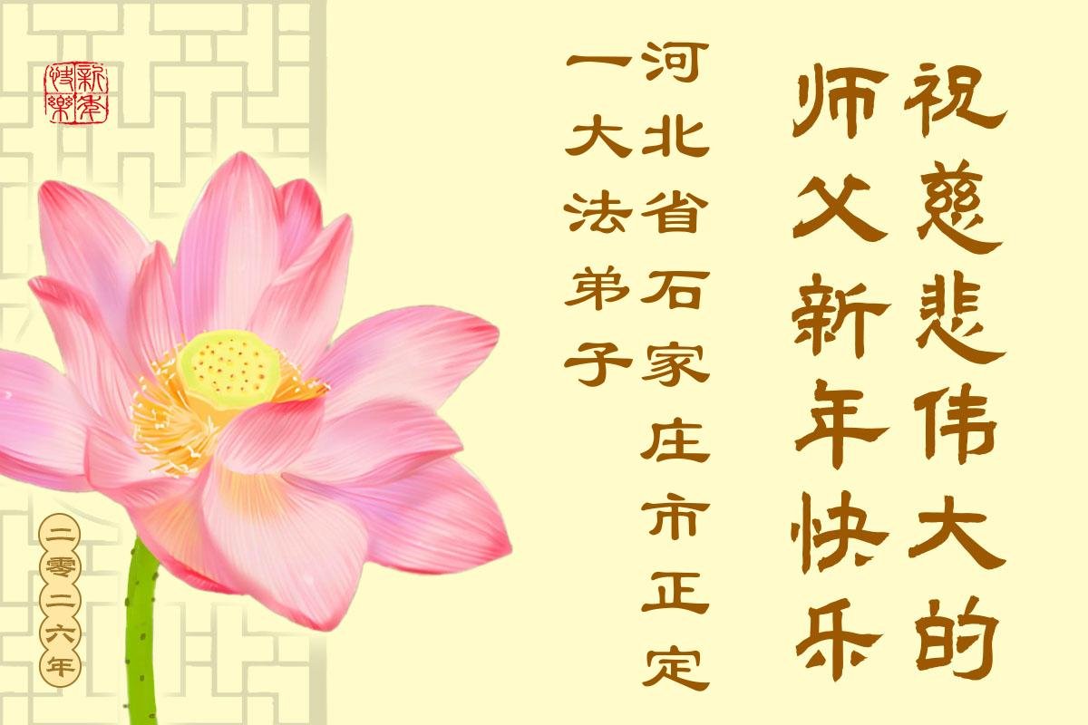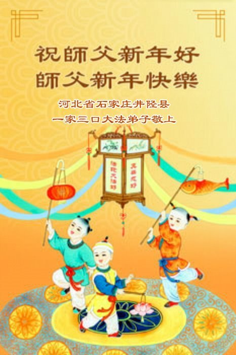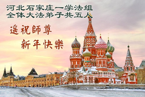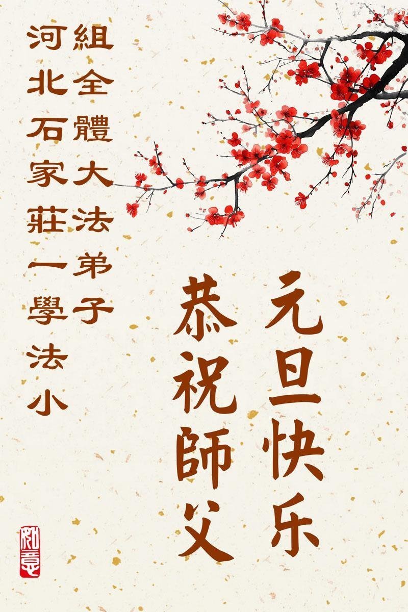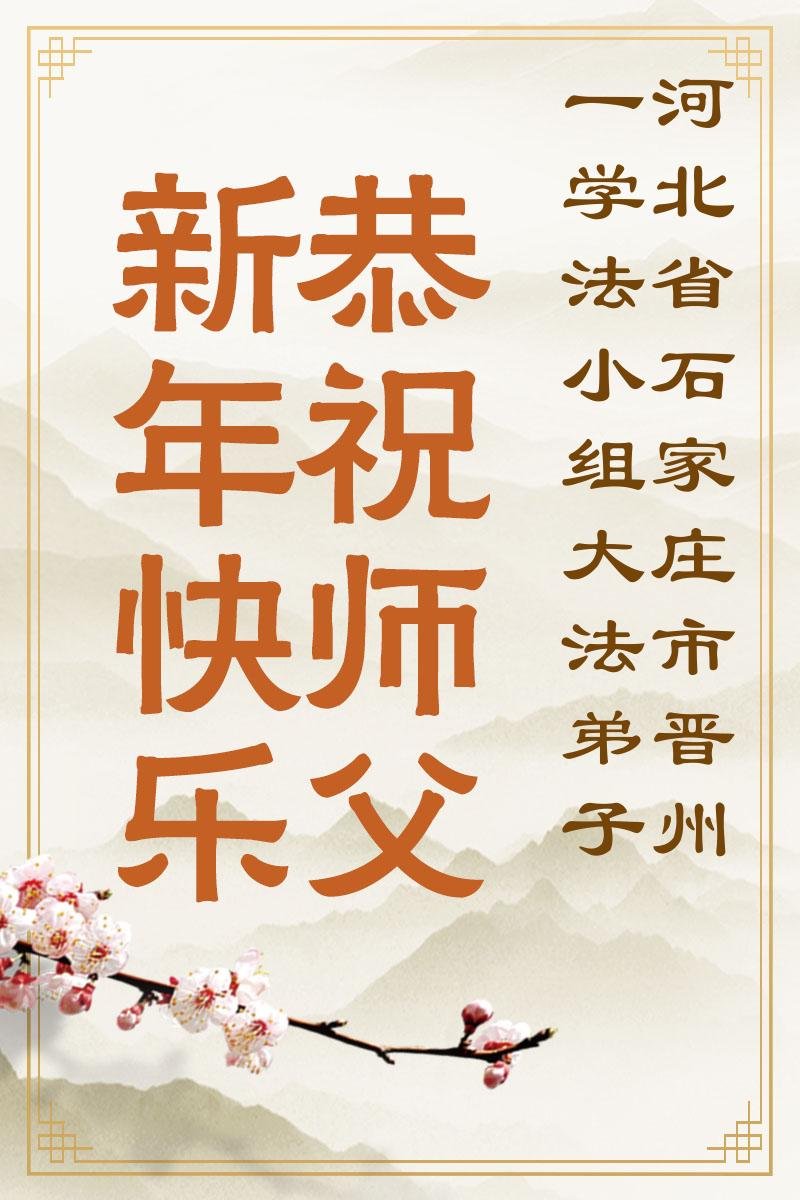 (Minghui.org) Zu Neujahr senden Falun-Dafa-Praktizierende auf der ganzen Welt traditionell Neujahrsgrüße, Grußkarten, Gedichte und Fotos an die Minghui-Website. Damit wünschen sie ihrem verehrten Meister Li Hongzhi ein frohes neues Jahr und bringen dem Meister ihre Dankbarkeit für die barmherzige Errettung zum Ausdruck. Sie geloben, in ihrer Kultivierung fleißig voranzukommen und noch mehr Lebewesen zu erretten. Im Folgenden veröffentlichen wir einen Teil dieser Grüße aus Shijiazhuang: