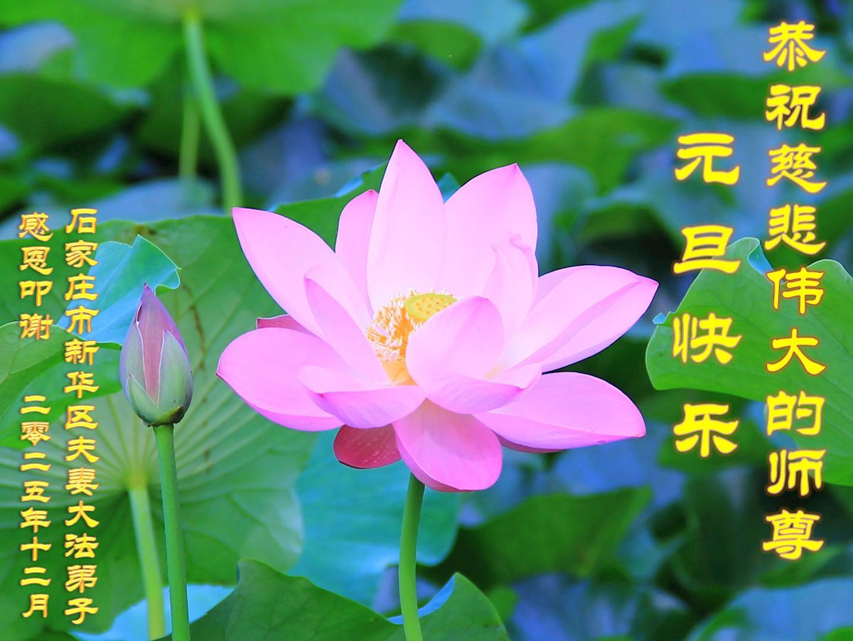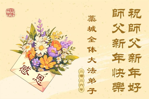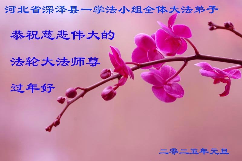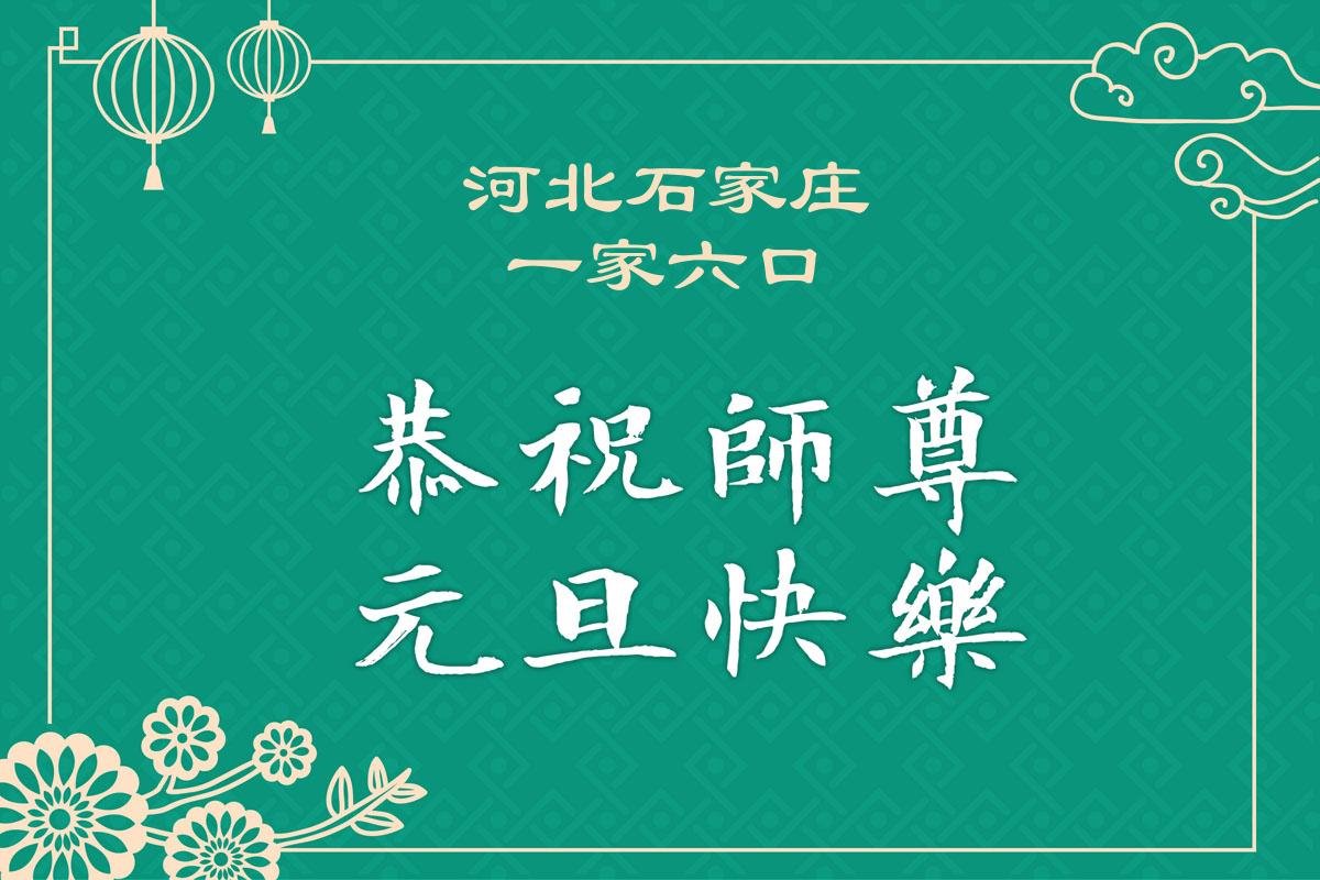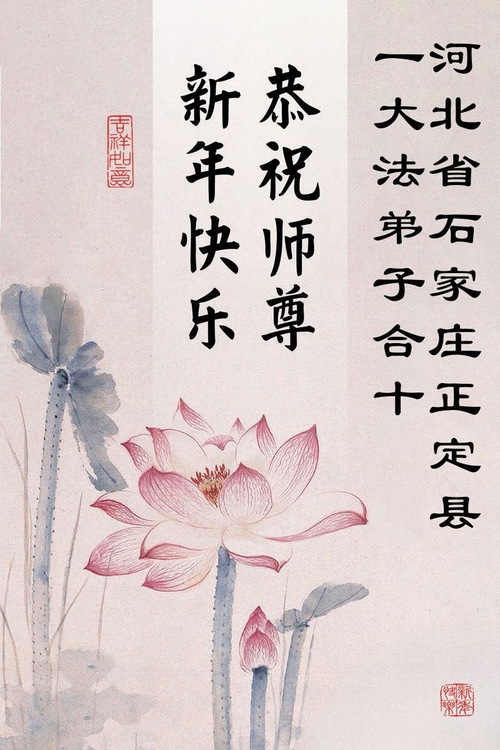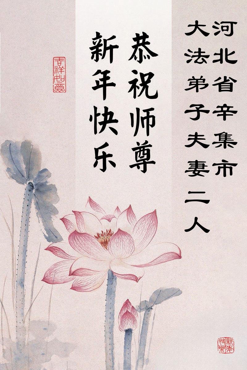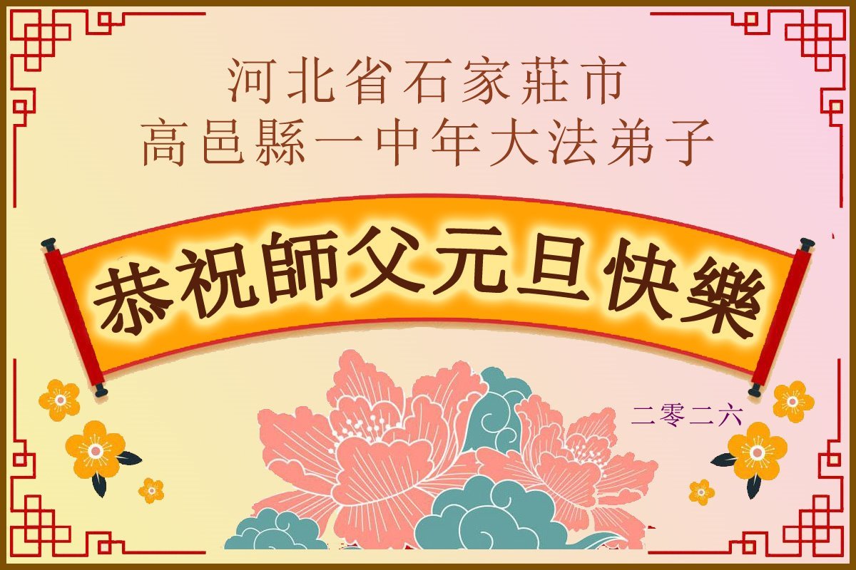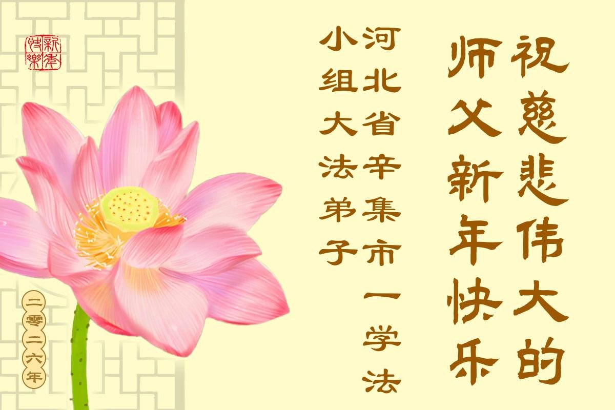 (Minghui.org) Zu Neujahr senden Falun-Dafa-Praktizierende auf der ganzen Welt traditionell Neujahrsgrüße, Grußkarten, Gedichte und Fotos an die Minghui-Website. Damit wünschen sie ihrem verehrten Meister Li Hongzhi ein frohes neues Jahr und bringen dem Meister ihre Dankbarkeit für die barmherzige Errettung zum Ausdruck. Sie geloben, in ihrer Kultivierung fleißig voranzukommen und noch mehr Lebewesen zu erretten. Im Folgenden veröffentlichen wir einen Teil dieser Grüße aus Shijiazhuang: