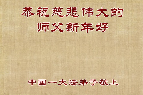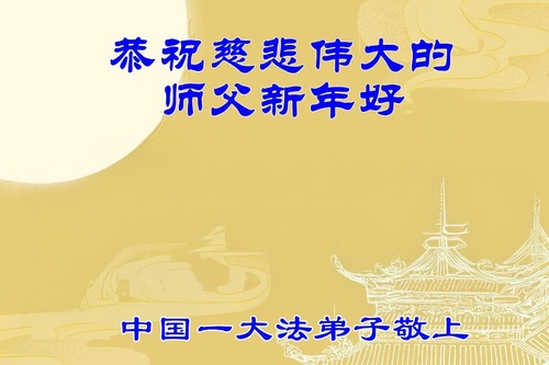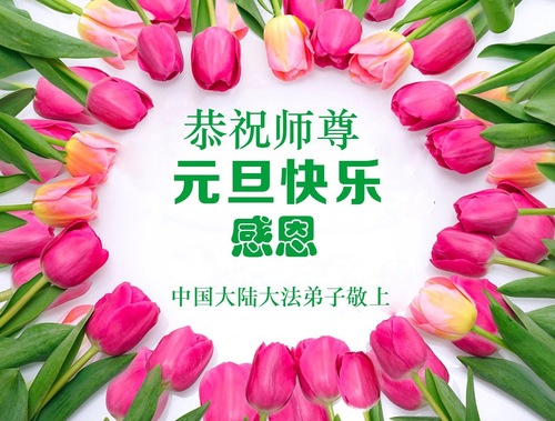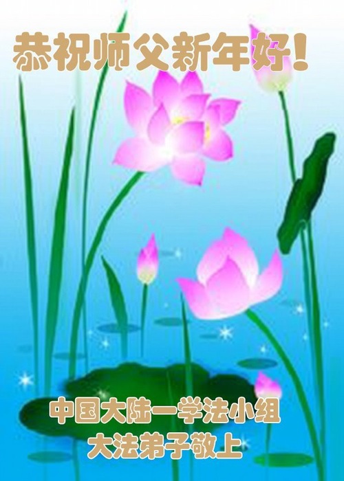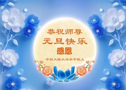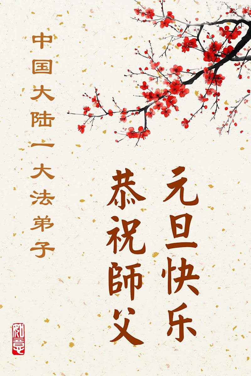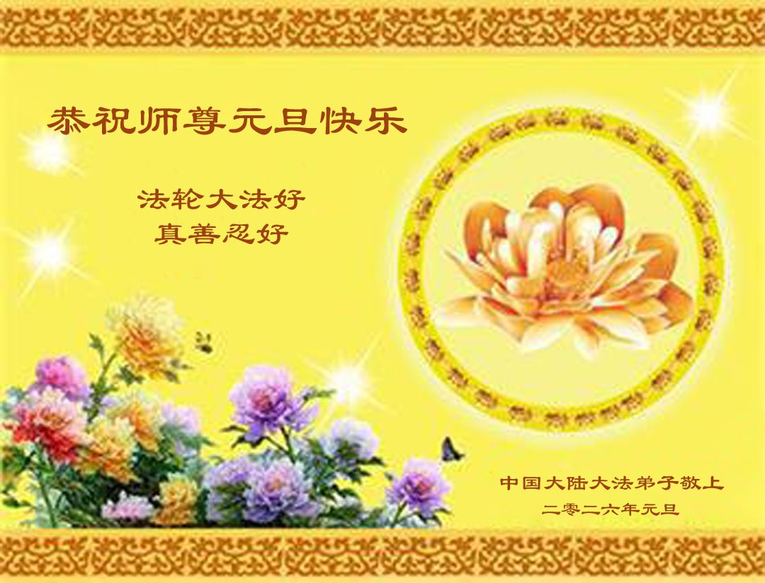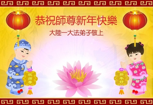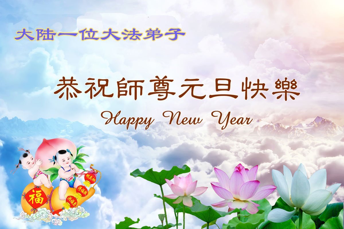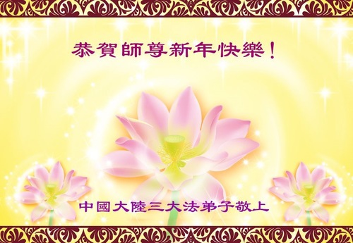 (Minghui.org) Zu Neujahr senden Falun-Dafa-Praktizierende auf der ganzen Welt traditionell Neujahrsgrüße, Grußkarten, Gedichte und Fotos an die Minghui-Website. Damit wünschen sie ihrem verehrten Meister Li Hongzhi ein frohes neues Jahr und bringen dem Meister ihre Dankbarkeit für die barmherzige Errettung zum Ausdruck. Sie geloben, in ihrer Kultivierung fleißig voranzukommen und noch mehr Lebewesen zu erretten. Im Folgenden veröffentlichen wir einen Teil dieser Grüße aus Festlandchina: