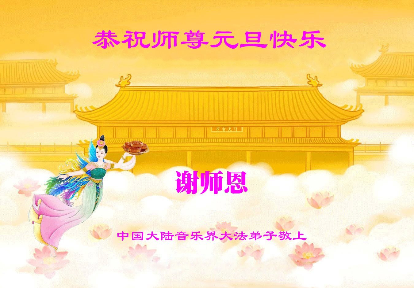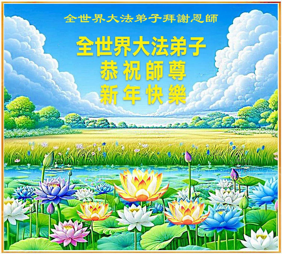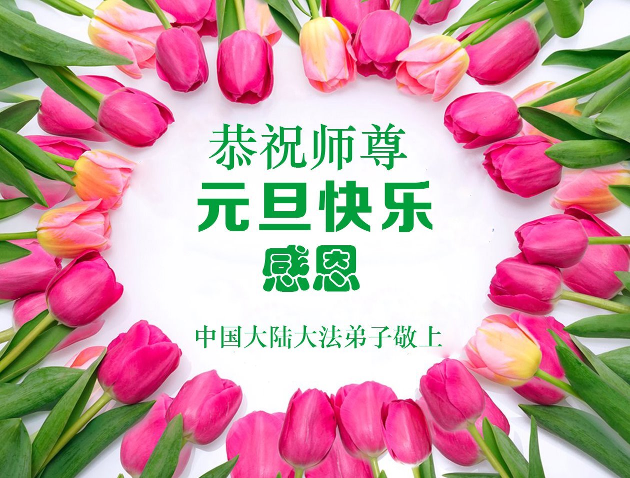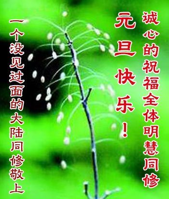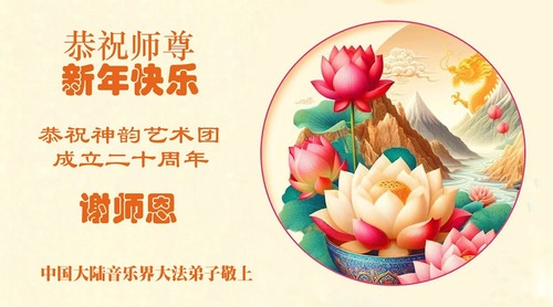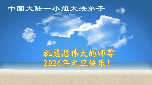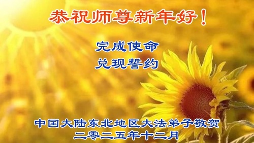 (Minghui.org) Zu Neujahr senden Falun-Dafa-Praktizierende auf der ganzen Welt traditionell Neujahrsgrüße, Grußkarten, Gedichte und Fotos an die Minghui-Website. Damit wünschen sie ihrem verehrten Meister Li Hongzhi ein frohes neues Jahr und bringen dem Meister ihre Dankbarkeit für die barmherzige Errettung zum Ausdruck. Sie geloben, in ihrer Kultivierung fleißig voranzukommen und noch mehr Lebewesen zu erretten. Im Folgenden veröffentlichen wir einen Teil dieser Grüße aus Festlandchina: