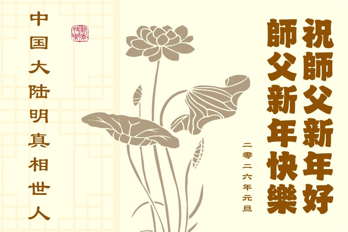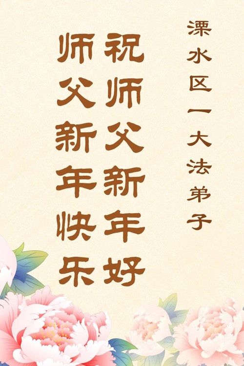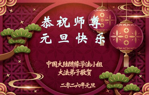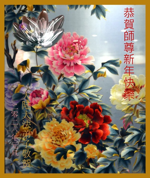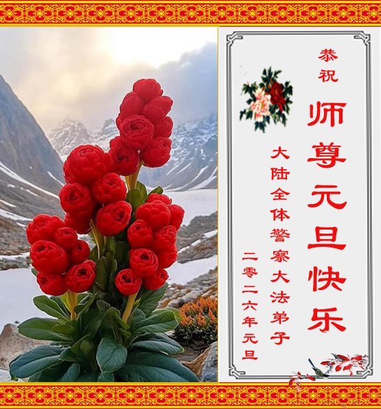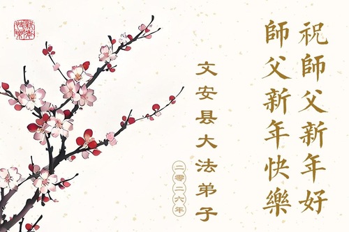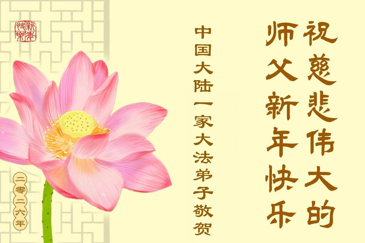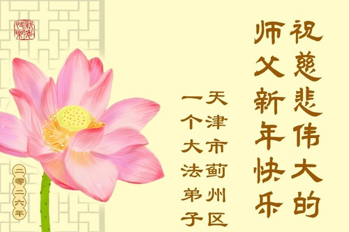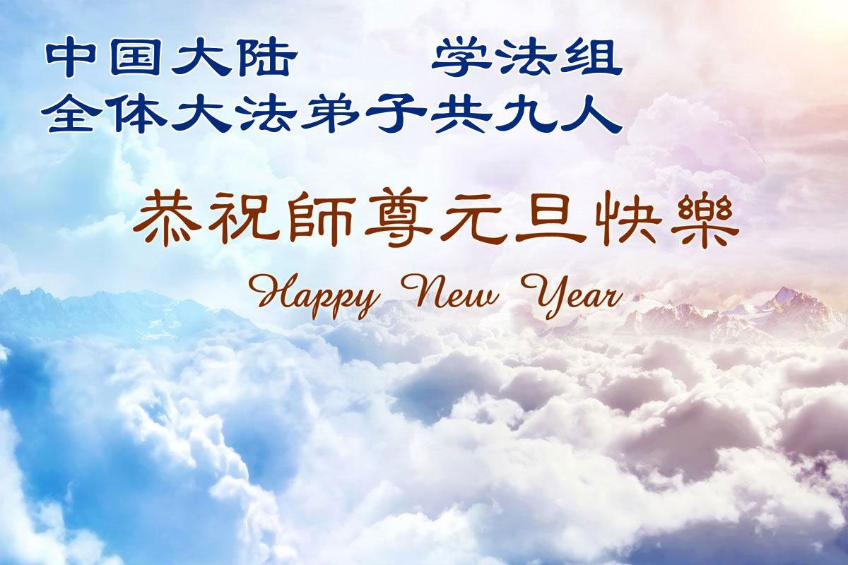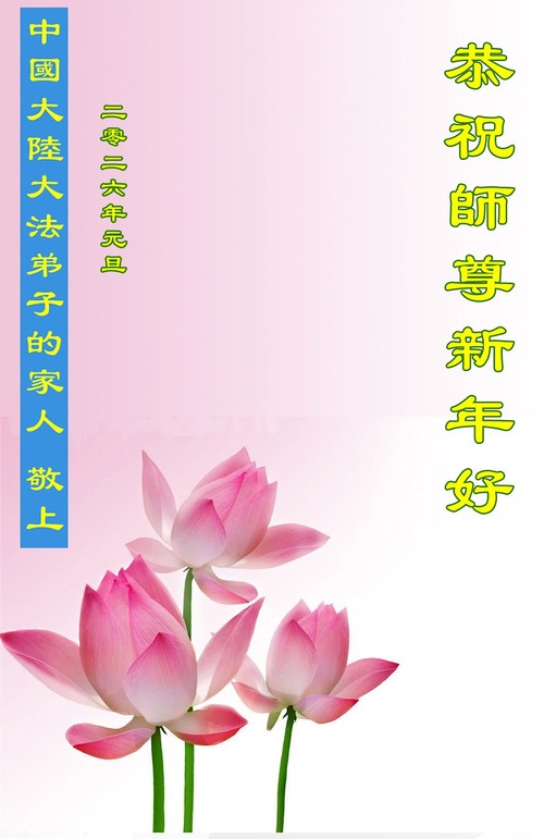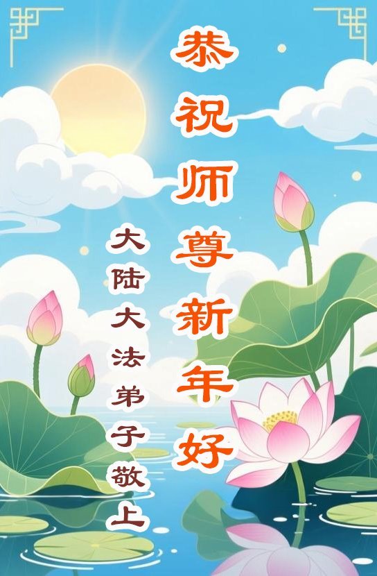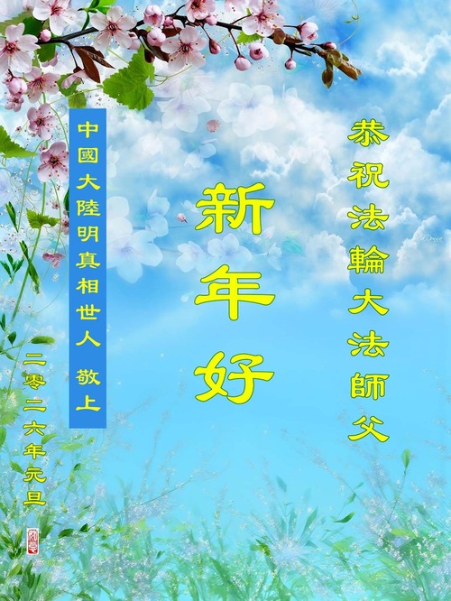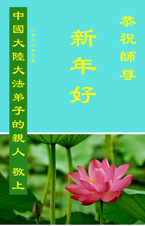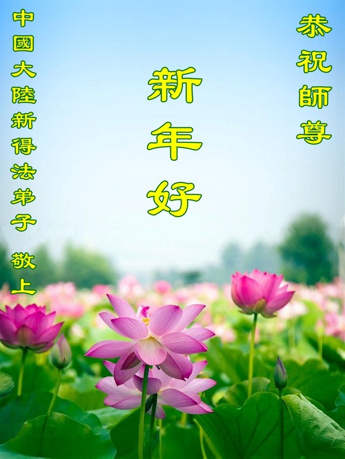 (Minghui.org) Zu Neujahr senden Falun-Dafa-Praktizierende auf der ganzen Welt traditionell Neujahrsgrüße, Grußkarten, Gedichte und Fotos an die Minghui-Website. Damit wünschen sie ihrem verehrten Meister Li Hongzhi ein frohes neues Jahr und bringen dem Meister ihre Dankbarkeit für die barmherzige Errettung zum Ausdruck. Sie geloben, in ihrer Kultivierung fleißig voranzukommen und noch mehr Lebewesen zu erretten. Im Folgenden veröffentlichen wir einen Teil dieser Grüße aus Festlandchina: