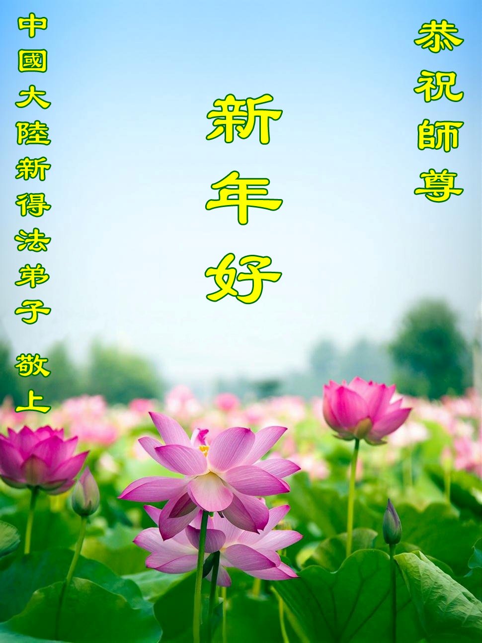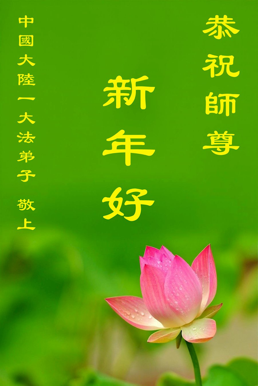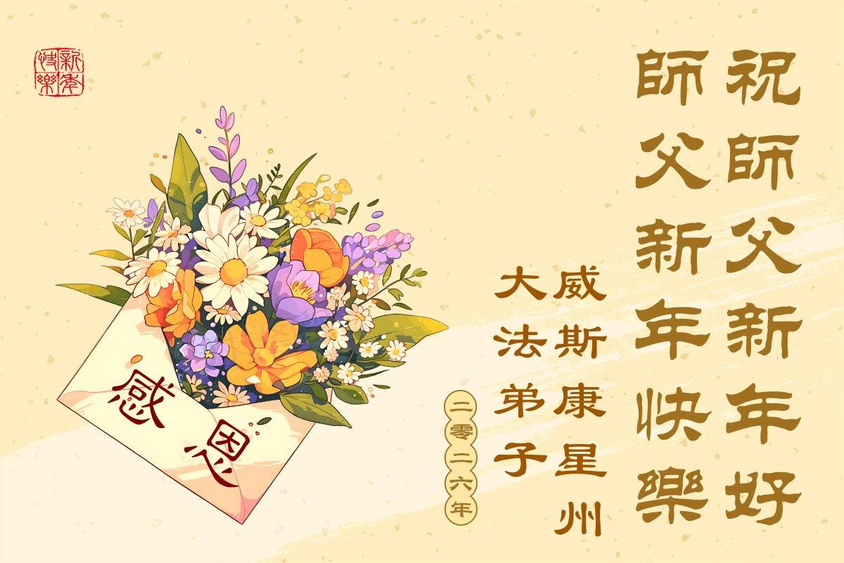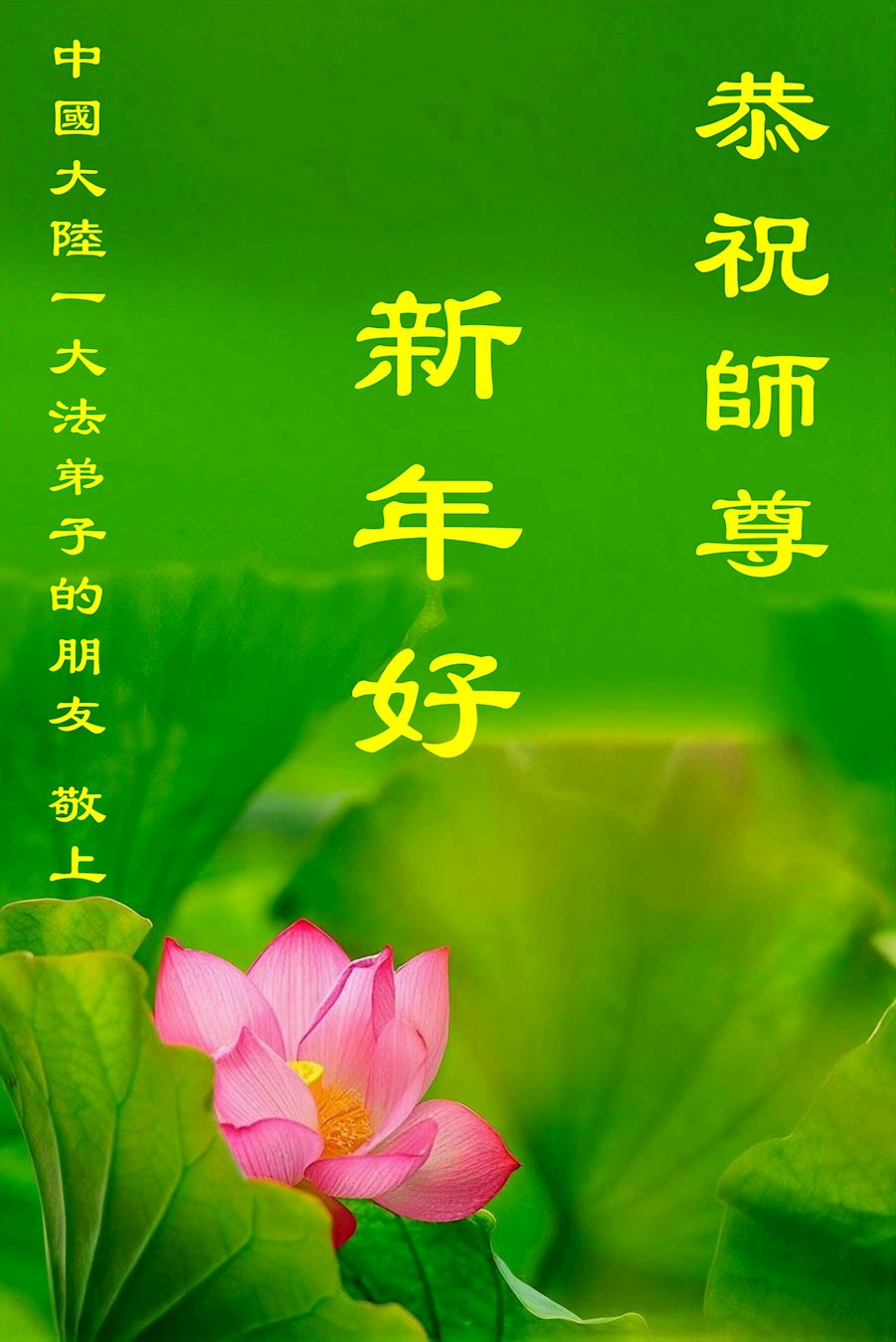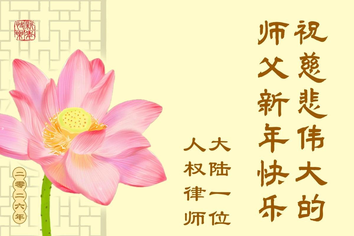 (Minghui.org) Zu Neujahr senden Falun-Dafa-Praktizierende auf der ganzen Welt traditionell Neujahrsgrüße, Grußkarten, Gedichte und Fotos an die Minghui-Website. Damit wünschen sie ihrem verehrten Meister Li Hongzhi ein frohes neues Jahr und bringen dem Meister ihre Dankbarkeit für die barmherzige Errettung zum Ausdruck. Sie geloben, in ihrer Kultivierung fleißig voranzukommen und noch mehr Lebewesen zu erretten. Im Folgenden veröffentlichen wir einen Teil dieser Grüße aus Festlandchina: