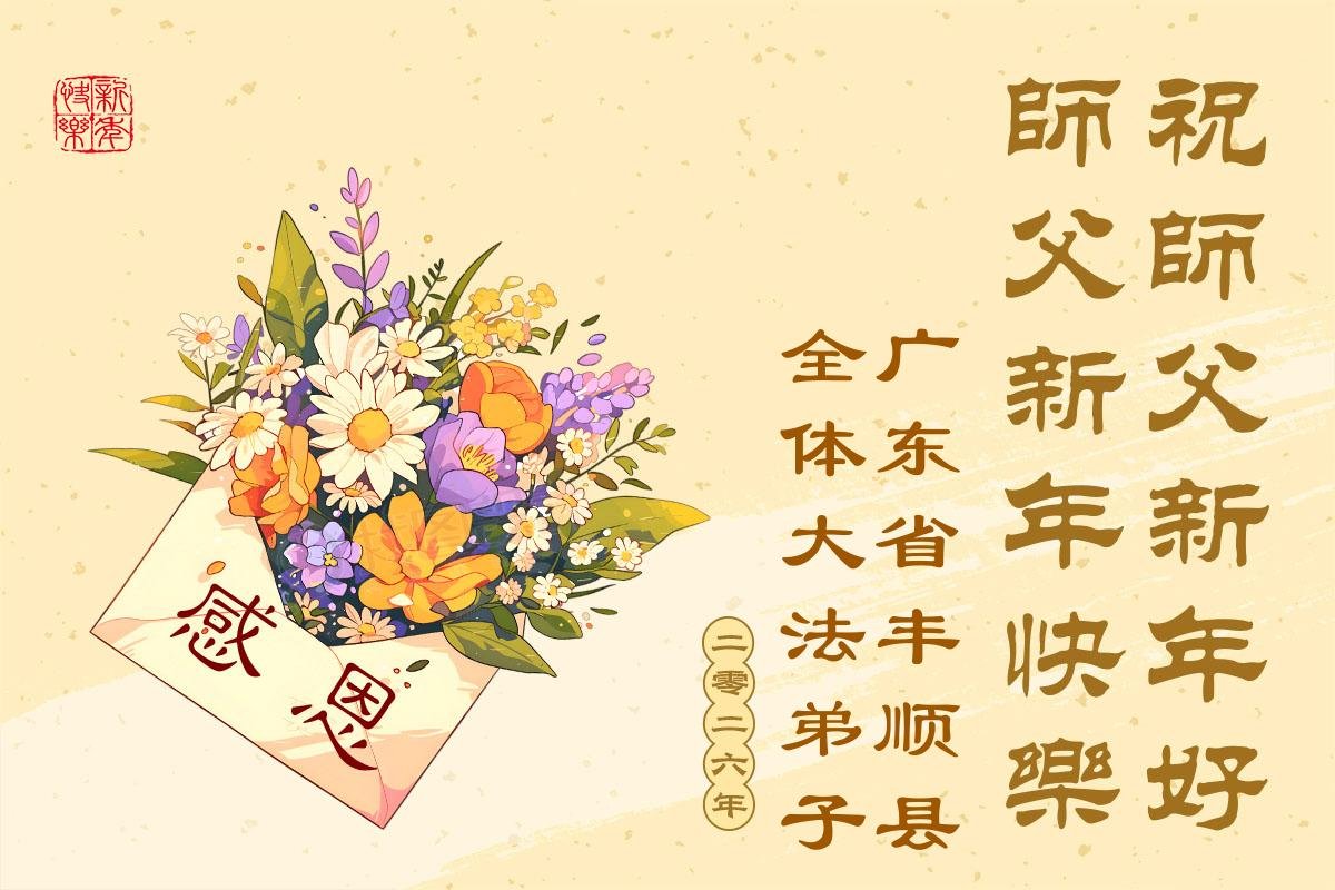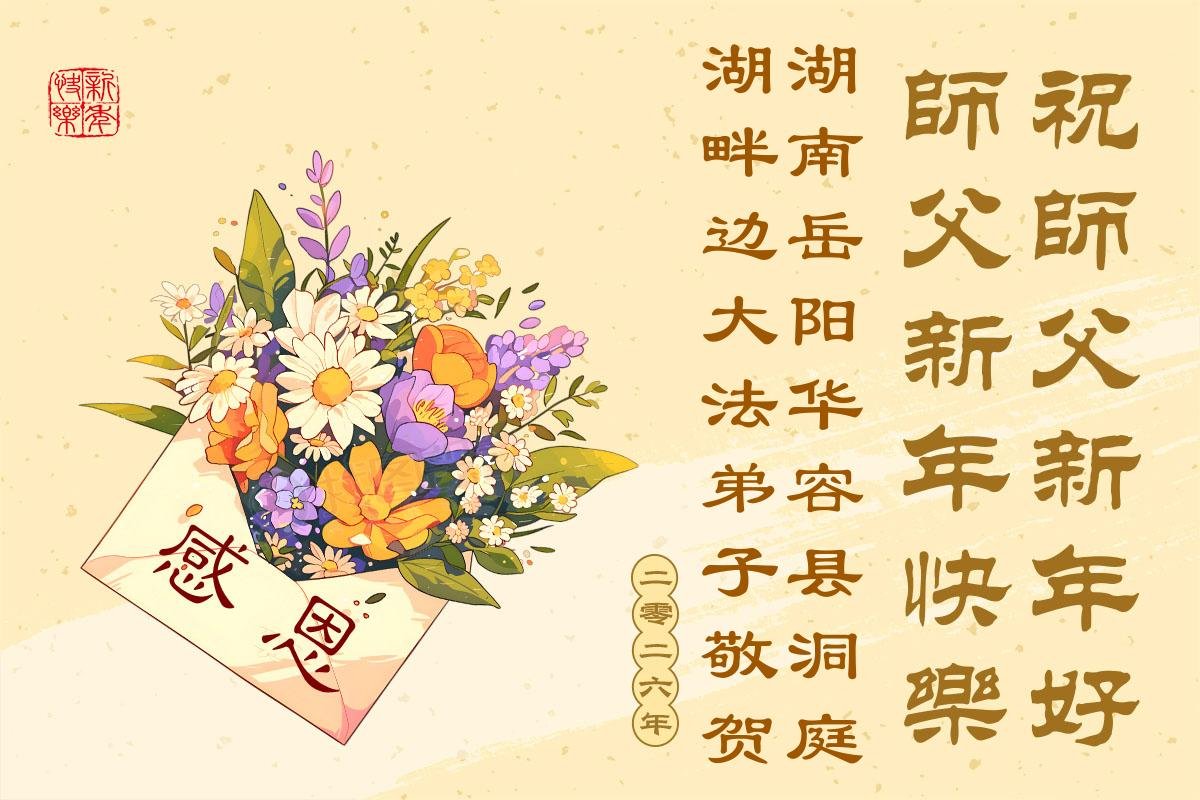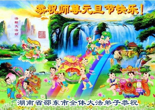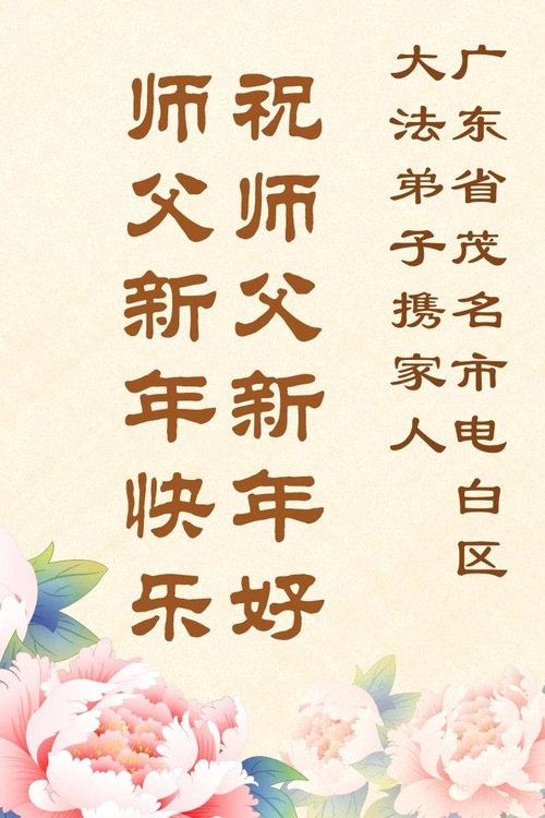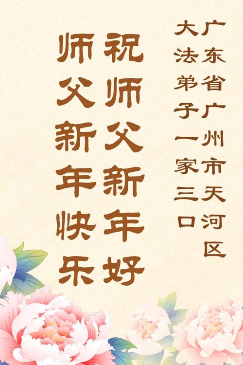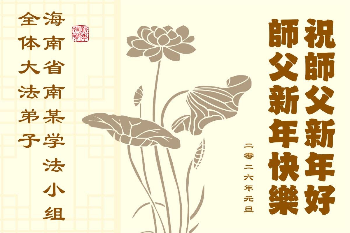 (Minghui.org) Zu Neujahr senden Falun-Dafa-Praktizierende auf der ganzen Welt traditionell Neujahrsgrüße, Grußkarten, Gedichte und Fotos an die Minghui-Website. Damit wünschen sie ihrem verehrten Meister Li Hongzhi ein frohes neues Jahr und bringen dem Meister ihre Dankbarkeit für die barmherzige Errettung zum Ausdruck. Sie geloben, in ihrer Kultivierung fleißig voranzukommen und noch mehr Lebewesen zu erretten. Im Folgenden veröffentlichen wir einen Teil dieser Grüße aus Guangdong, Guangxi, Hainan, Hunan und Jiangsu: