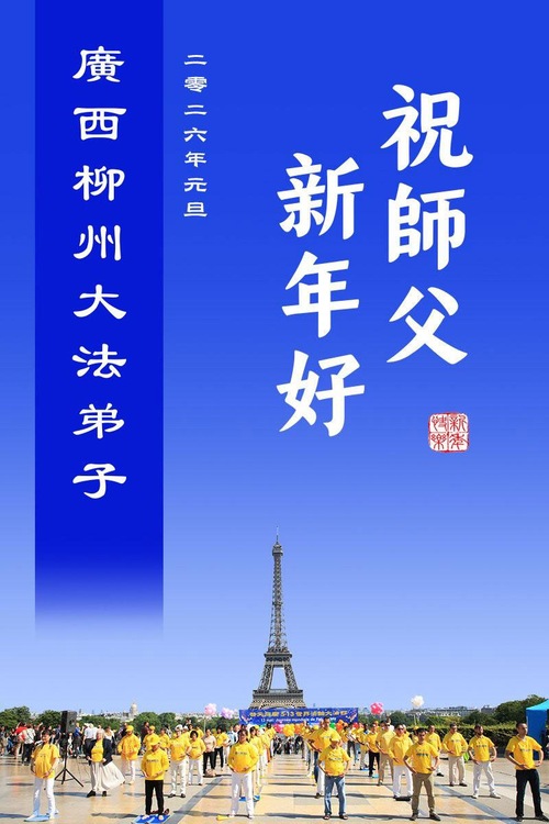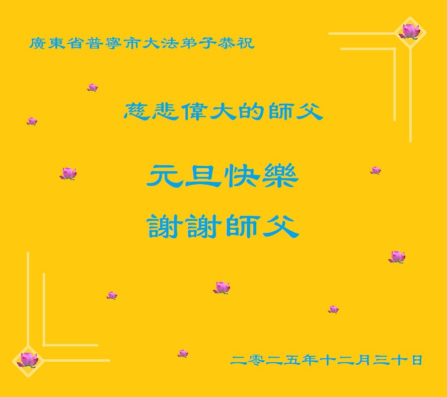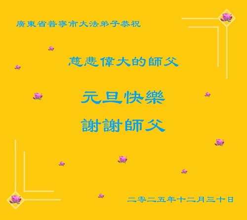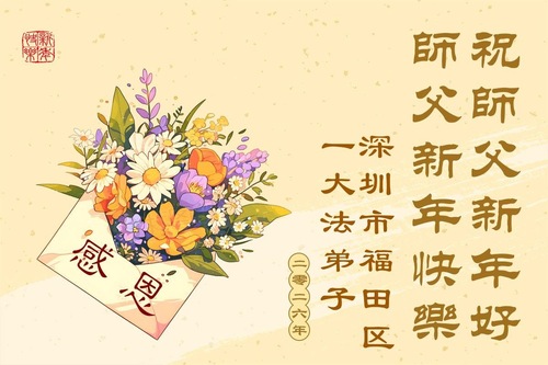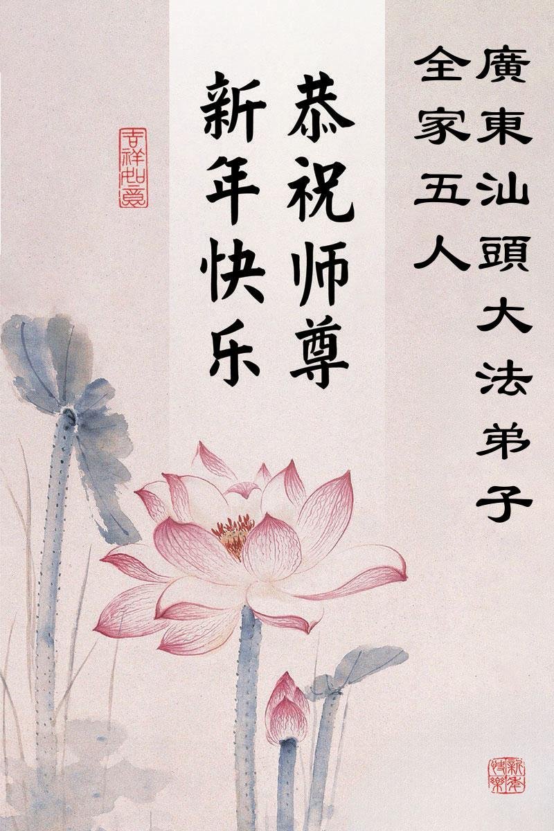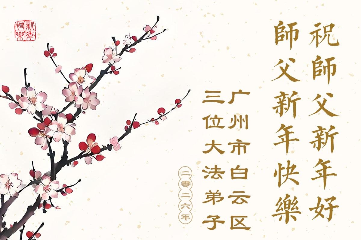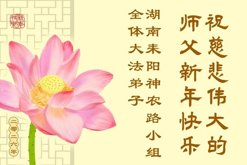 (Minghui.org) Zu Neujahr senden Falun-Dafa-Praktizierende auf der ganzen Welt traditionell Neujahrsgrüße, Grußkarten, Gedichte und Fotos an die Minghui-Website. Damit wünschen sie ihrem verehrten Meister Li Hongzhi ein frohes neues Jahr und bringen dem Meister ihre Dankbarkeit für die barmherzige Errettung zum Ausdruck. Sie geloben, in ihrer Kultivierung fleißig voranzukommen und noch mehr Lebewesen zu erretten. Im Folgenden veröffentlichen wir einen Teil dieser Grüße aus Guangdong, Guangxi, Hainan, Hunan und Jiangsu: