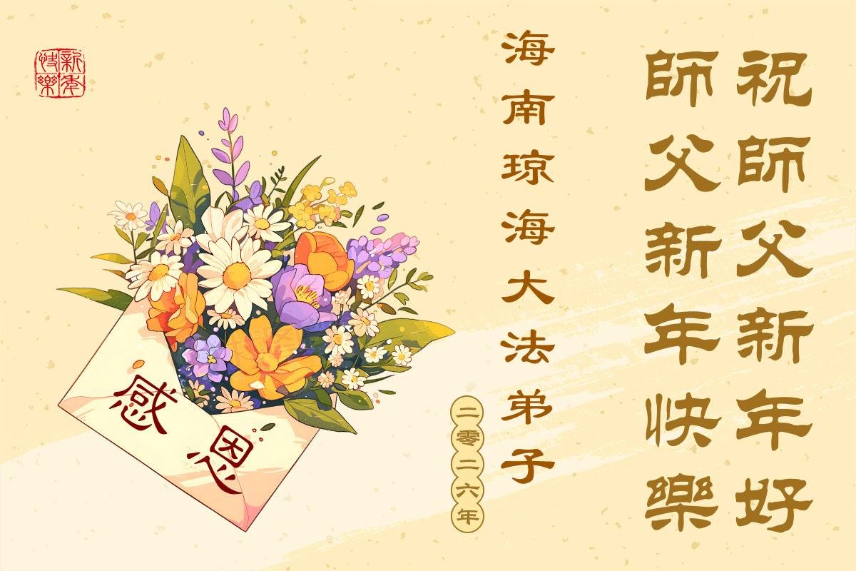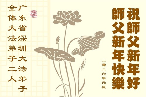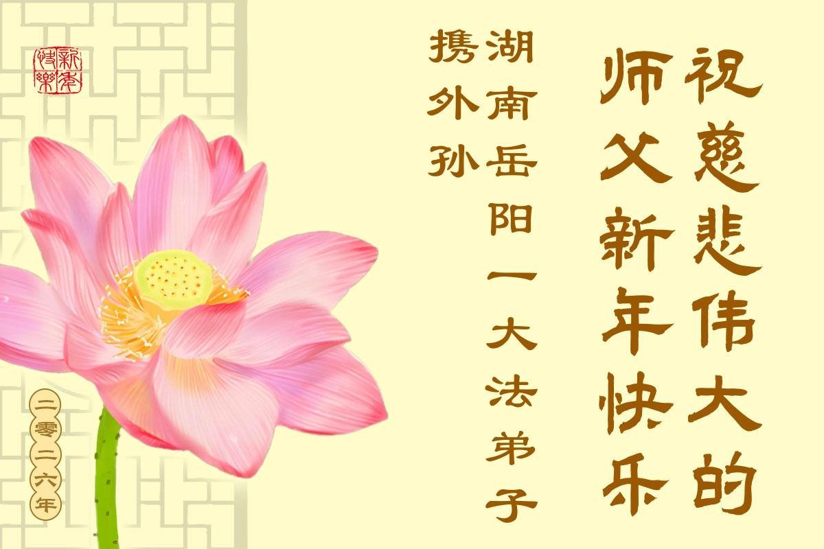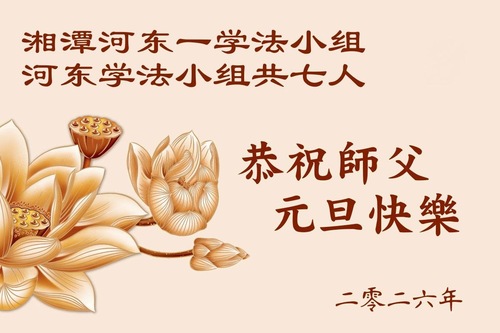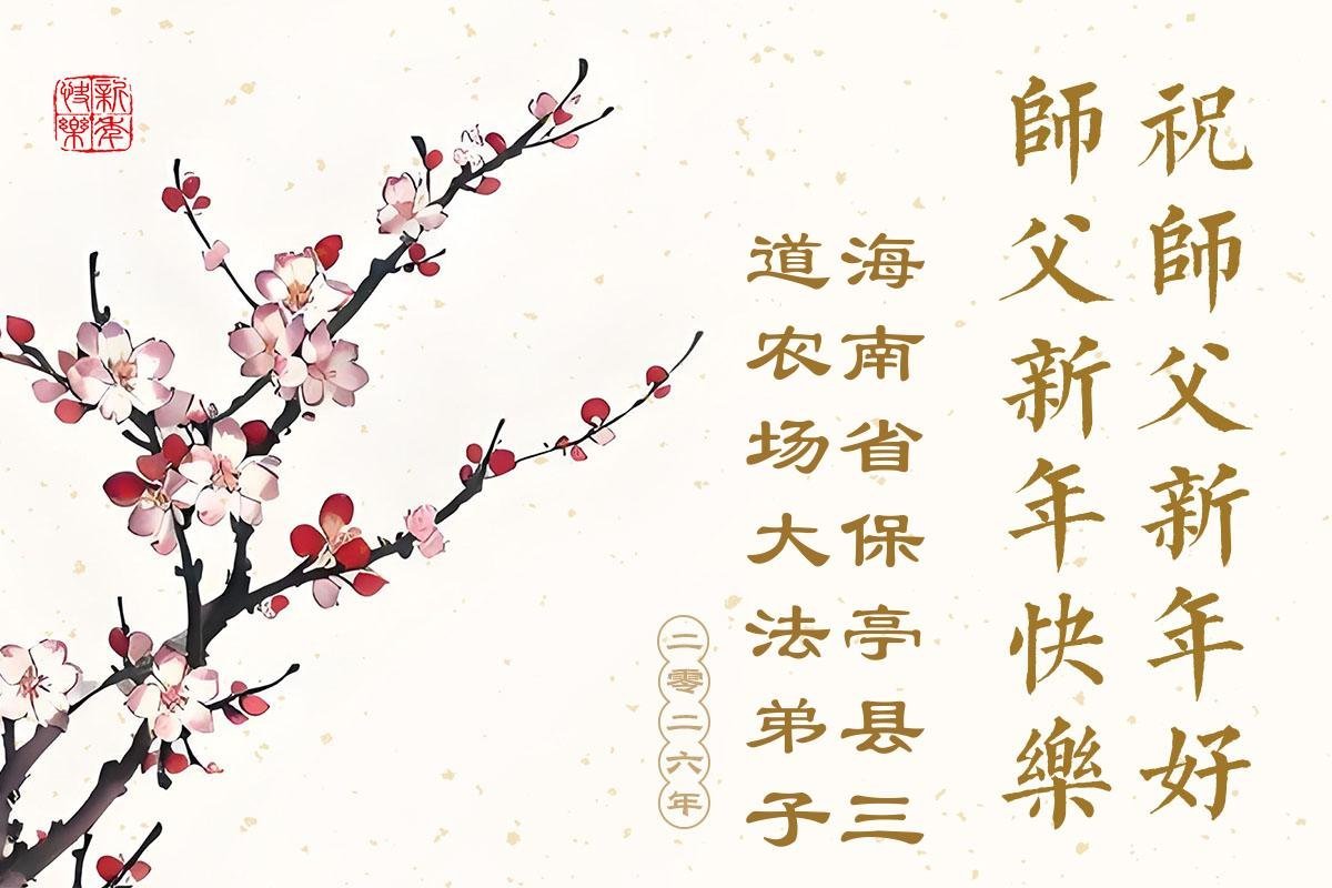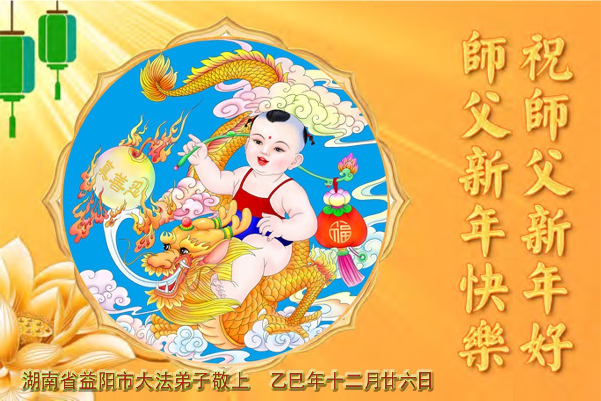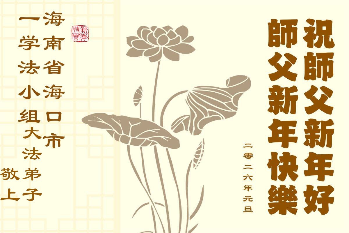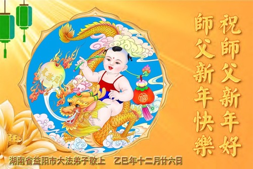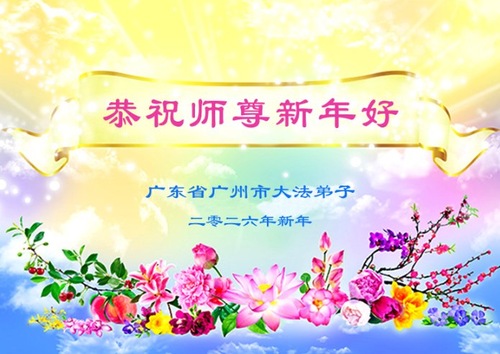 (Minghui.org) Zu Neujahr senden Falun-Dafa-Praktizierende auf der ganzen Welt traditionell Neujahrsgrüße, Grußkarten, Gedichte und Fotos an die Minghui-Website. Damit wünschen sie ihrem verehrten Meister Li Hongzhi ein frohes neues Jahr und bringen dem Meister ihre Dankbarkeit für die barmherzige Errettung zum Ausdruck. Sie geloben, in ihrer Kultivierung fleißig voranzukommen und noch mehr Lebewesen zu erretten. Im Folgenden veröffentlichen wir einen Teil dieser Grüße aus Guangdong, Guangxi, Hainan, Hunan und Jiangsu: