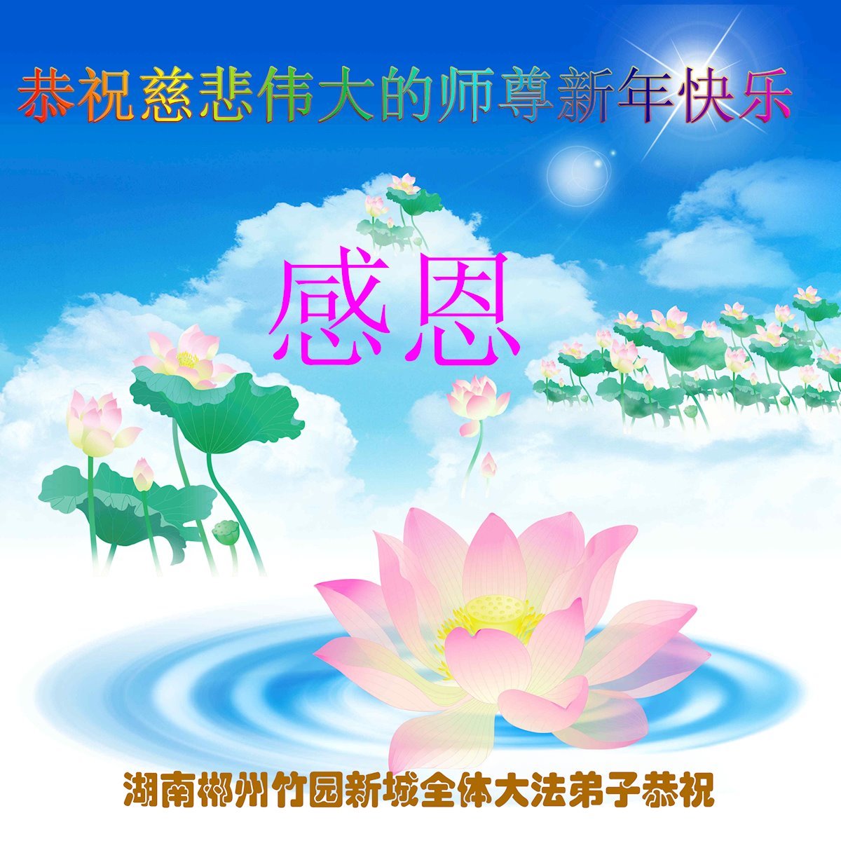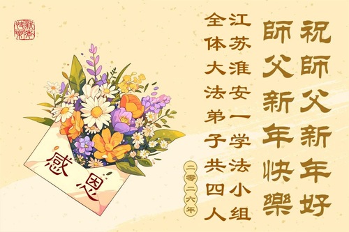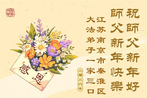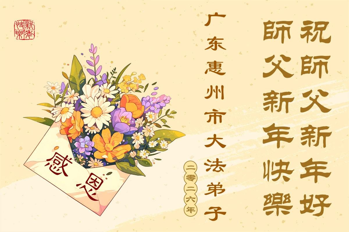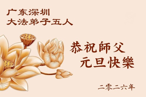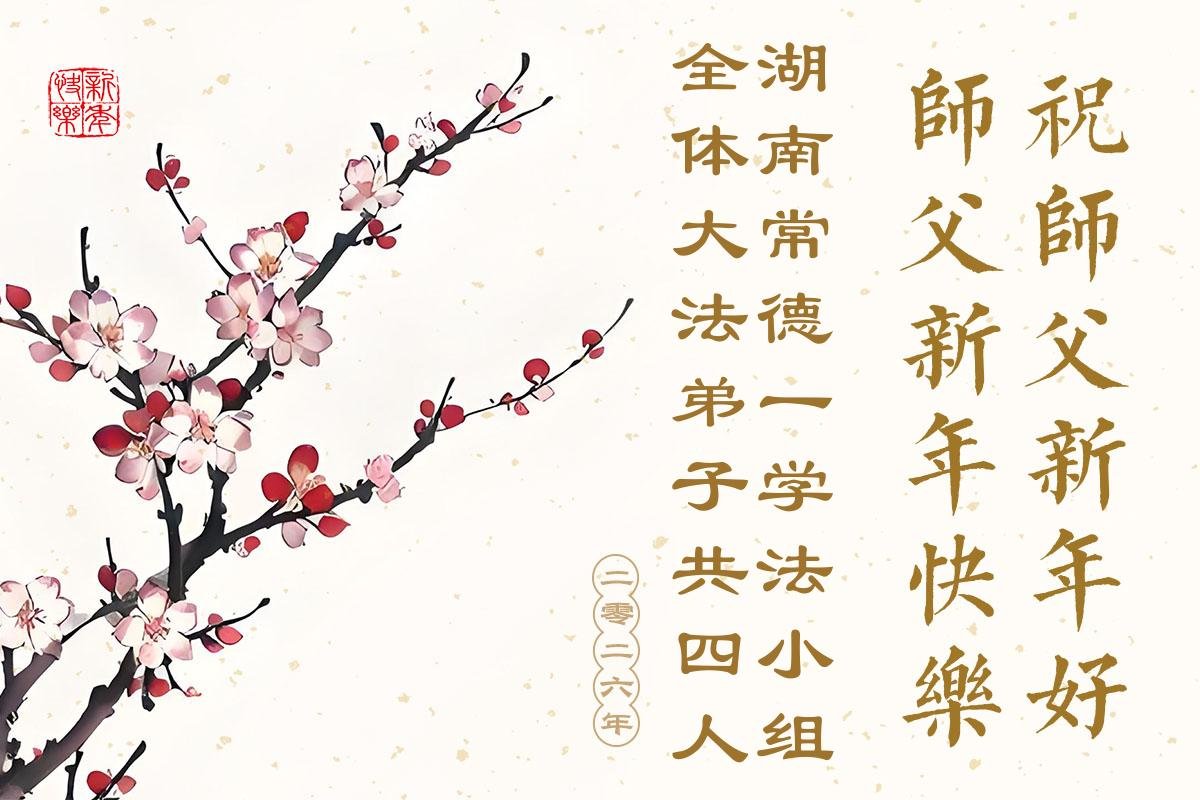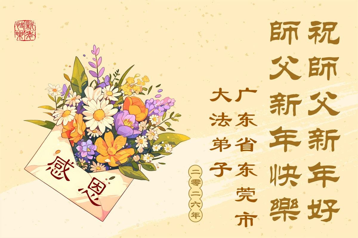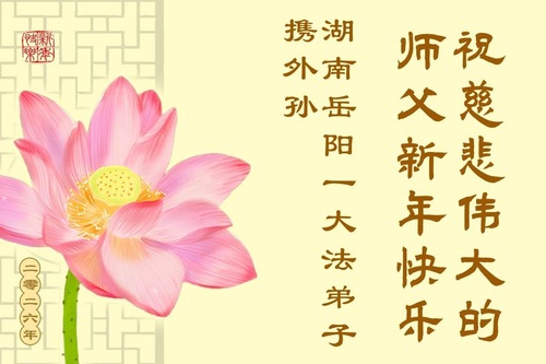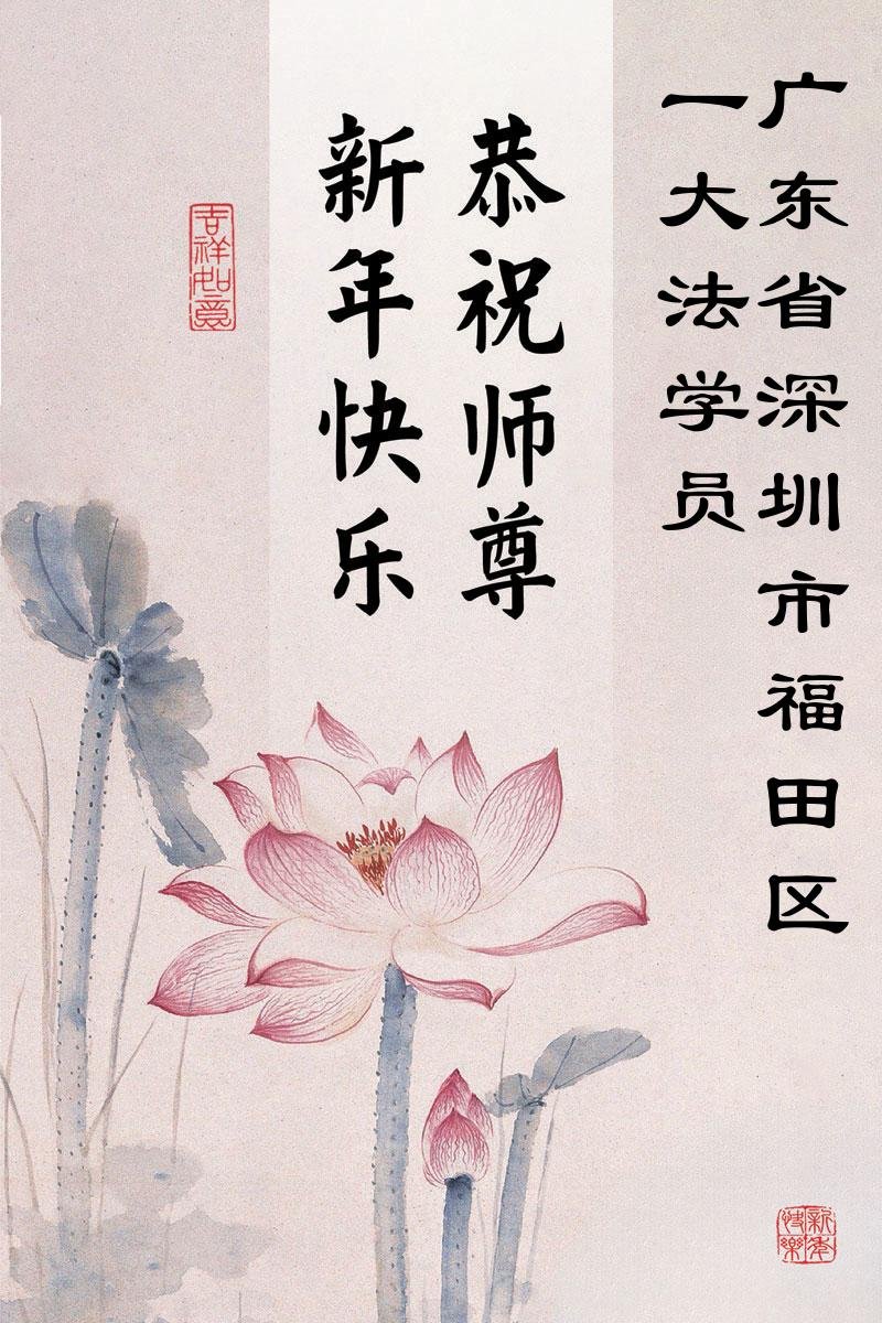 (Minghui.org) Zu Neujahr senden Falun-Dafa-Praktizierende auf der ganzen Welt traditionell Neujahrsgrüße, Grußkarten, Gedichte und Fotos an die Minghui-Website. Damit wünschen sie ihrem verehrten Meister Li Hongzhi ein frohes neues Jahr und bringen dem Meister ihre Dankbarkeit für die barmherzige Errettung zum Ausdruck. Sie geloben, in ihrer Kultivierung fleißig voranzukommen und noch mehr Lebewesen zu erretten. Im Folgenden veröffentlichen wir einen Teil dieser Grüße aus Guangdong, Guangxi, Hainan, Hunan und Jiangsu: