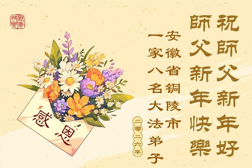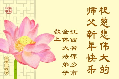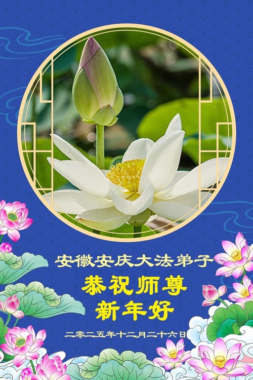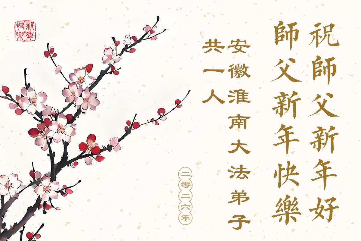 (Minghui.org) Zu Neujahr senden Falun-Dafa-Praktizierende auf der ganzen Welt traditionell Neujahrsgrüße, Grußkarten, Gedichte und Fotos an die Minghui-Website. Damit wünschen sie ihrem verehrten Meister Li Hongzhi ein frohes neues Jahr und bringen dem Meister ihre Dankbarkeit für die barmherzige Errettung zum Ausdruck. Sie geloben, in ihrer Kultivierung fleißig voranzukommen und noch mehr Lebewesen zu erretten. Im Folgenden veröffentlichen wir einen Teil dieser Grüße aus Anhui, Jiangxi, Zhejiang und Fujian:
