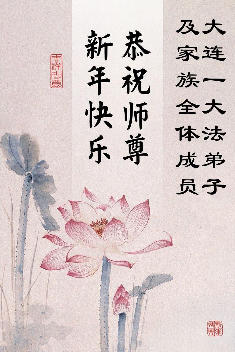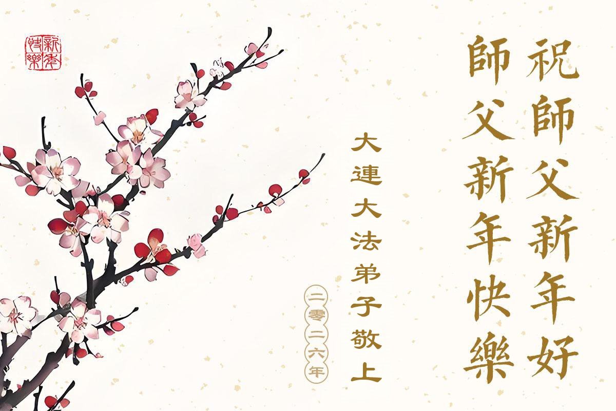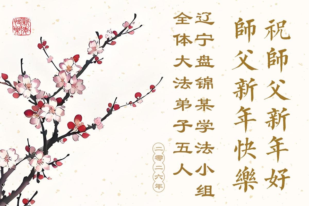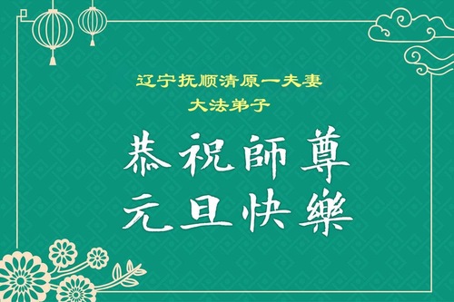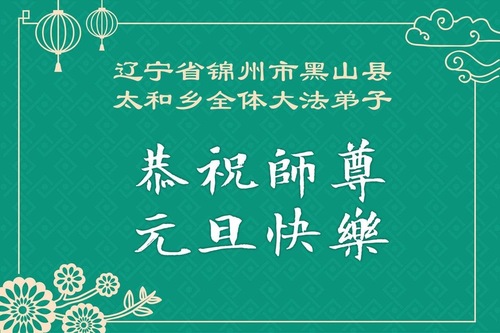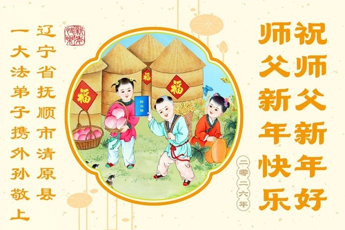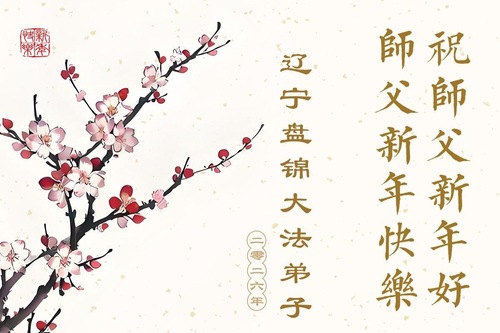 (Minghui.org) Zu Neujahr senden Falun-Dafa-Praktizierende auf der ganzen Welt traditionell Neujahrsgrüße, Grußkarten, Gedichte und Fotos an die Minghui-Website. Damit wünschen sie ihrem verehrten Meister Li Hongzhi ein frohes neues Jahr und bringen dem Meister ihre Dankbarkeit für die barmherzige Errettung zum Ausdruck. Sie geloben, in ihrer Kultivierung fleißig voranzukommen und noch mehr Lebewesen zu erretten. Im Folgenden veröffentlichen wir einen Teil dieser Grüße aus Liaoning: