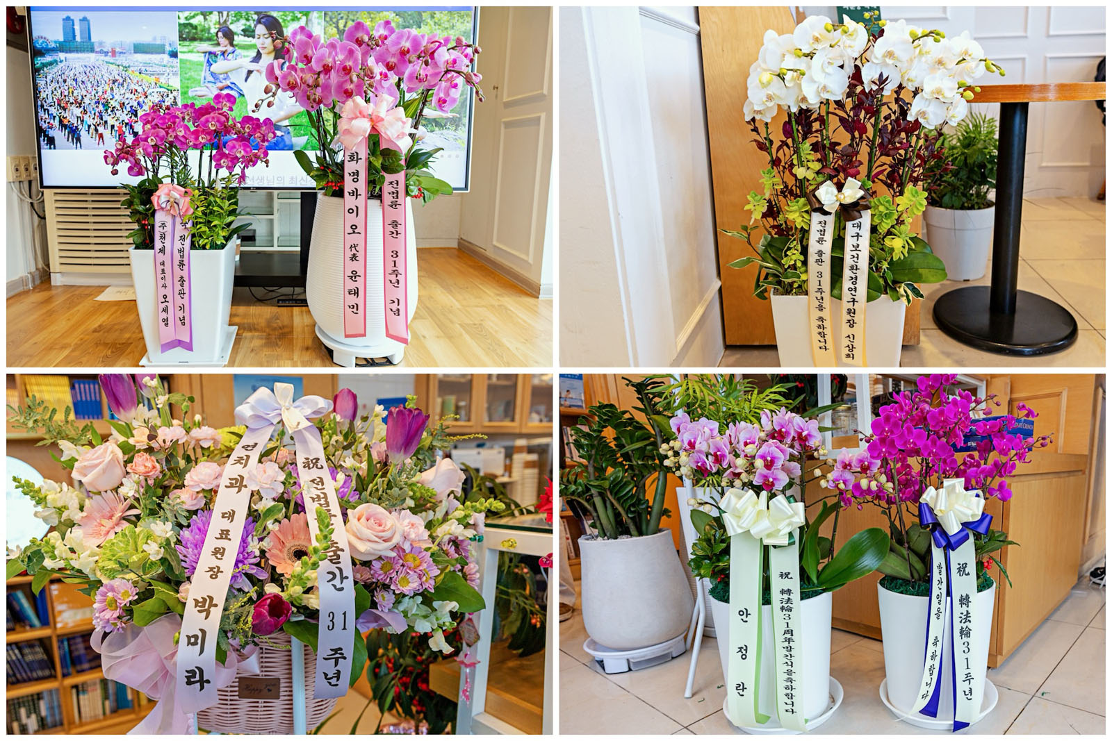 Lokale Praktizierende aus allen Gesellschaftsschichten brachten zum Jahrestag Blumen als Zeichen ihrer Dankbarkeit. Unter ihnen befanden sich der Geschäftsführer eines Biotechnologieunternehmens, der Leiter einer Zahnklinik sowie der Direktor des Gesundheits- und Umweltforschungsinstituts der Stadt Daegu.