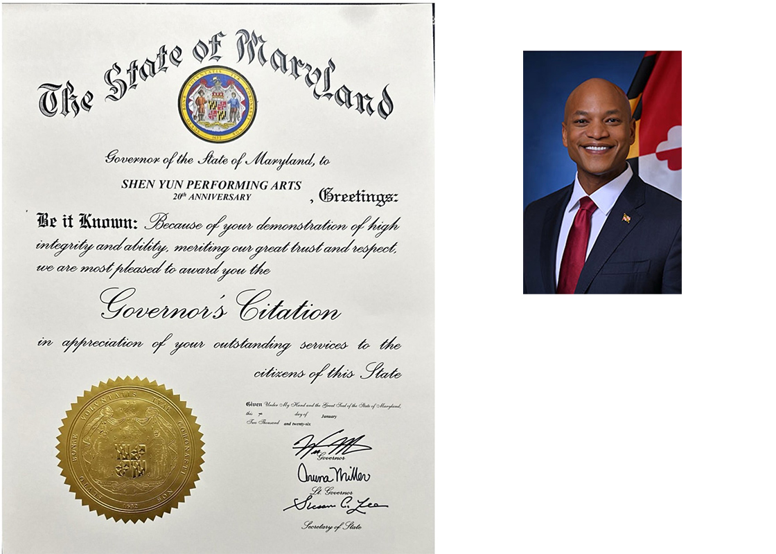 Gouverneur Wes Moore, Vizegouverneurin Aruna Miller und Staatssekretärin Susan C. Lee sprachen Shen Yun ihre Anerkennung für deren herausragenden Leistungen aus.