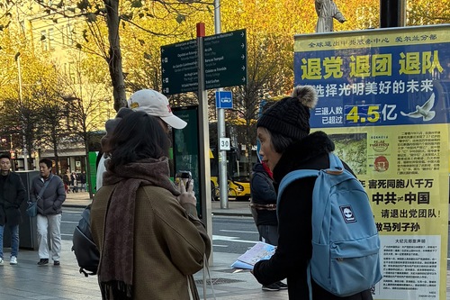 An einem Samstag kam eine Gruppe chinesischer Touristen an einem Informationsstand der Praktizierenden vorbei. Eine Praktizierende grüßte eine Frau mittleren Alters, die am Ende der Gruppe ging, und fragte: „Möchten Sie das lesen?“, während sie ihr eine chinesische Minghui-Publikation anbot.