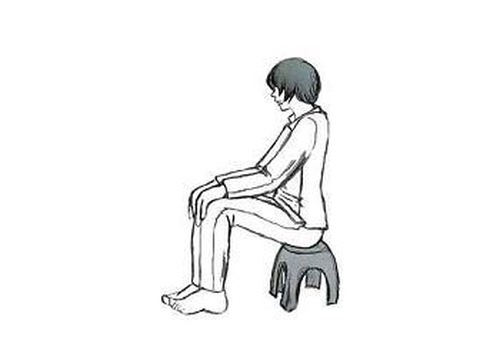Darstellung der Foltermethode: auf kleinem Hocker sitzen