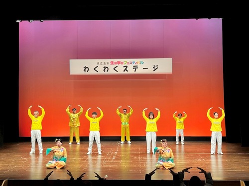 (Minghui.org) Falun-Dafa-Praktizierende aus Hiroshima nahmen am 8. Februar 2026 an der 35. „Feier des lebenslangen Lernens“ in der Kurara-Halle der Stadt Hiroshima teil. Dort führten sie einen Hüfttrommeltanz auf, zeigten die Falun-Dafa-Übungen und informierten über Falun Dafa. Viele Besucher nahmen die Gelegenheit wahr, die Übungen zu lernen, und berichteten anschließend von einem positiven Gefühl. Einige gaben an, von der Darbietung der Praktizierenden berührt gewesen zu sein und sich über die neue Erfahrung mit Falun Dafa zu freuen.