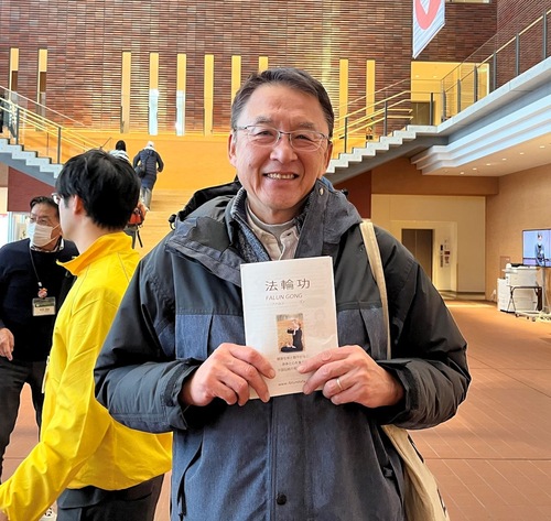 Frau Kinomura hatte die Falun-Dafa-Übungen erst vor Kurzem in einer Übungsgruppe kennengelernt und besuchte die Feier eher zufällig. Nach der Veranstaltung schrieb sie einem Praktizierenden eine SMS mit den Worten: „Ich habe mich sehr gefreut, euren Auftritt heute auf der Bühne zu sehen! Es waren mehr Menschen da als erwartet. Ich habe eure Bewegungen mitgemacht und einige Videos aufgenommen. Ich finde, ihr seid allesamt beeindruckende Kultivierende!“