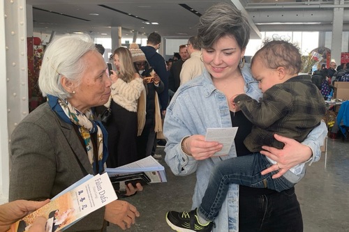 Als eine der Organisatorinnen der Veranstaltung zufällig am Stand der Praktizierenden vorbeikam, legte sie die Hände vor der Brust aneinander und betonte: „Wir unterstützen Falun Dafa und Shen Yun.“
