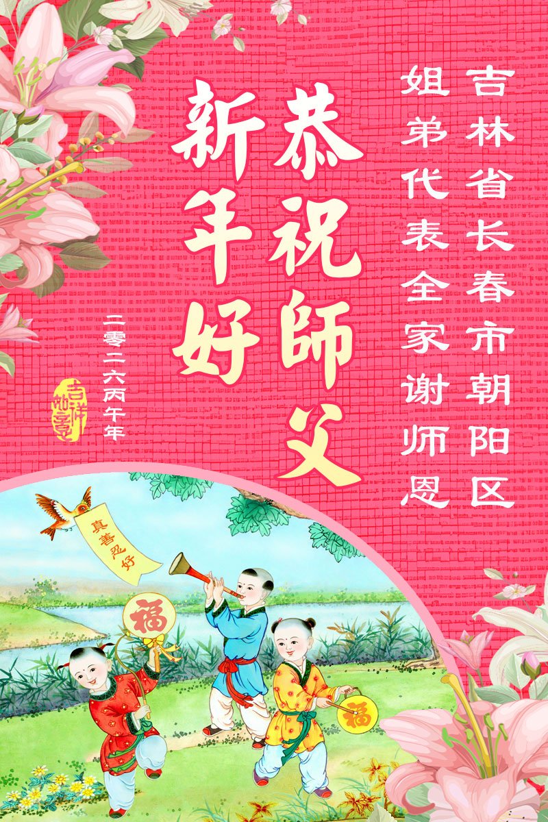 (Minghui.org) Zum chinesischen Neujahrsfest senden Falun-Dafa-Praktizierende auf der ganzen Welt traditionell Grußkarten, Gedichte und Fotos an die Minghui-Website. Damit wünschen sie ihrem barmherzigen, verehrten Meister Li Hongzhi ein frohes neues Jahr.