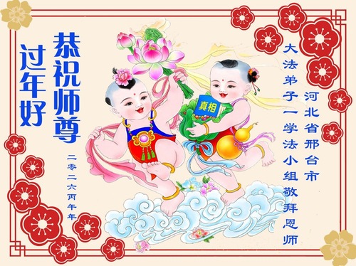 (Minghui.org) Zum chinesischen Neujahrsfest senden Falun-Dafa-Praktizierende auf der ganzen Welt traditionell Grußkarten, Gedichte und Fotos an die Minghui-Website. Damit wünschen sie ihrem barmherzigen, verehrten Meister Li Hongzhi ein frohes neues Jahr.