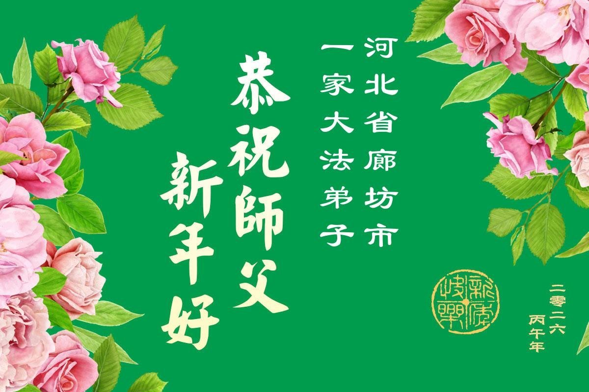 Die Grüße kommen von Praktizierenden aus folgenden Städten:Cangzhou, Langfang, Tangshan, Xingtai, Baoding, Qinhuangdao, Handan, Botou, Hengshui, Zhangjiakou und anderen Gebieten.