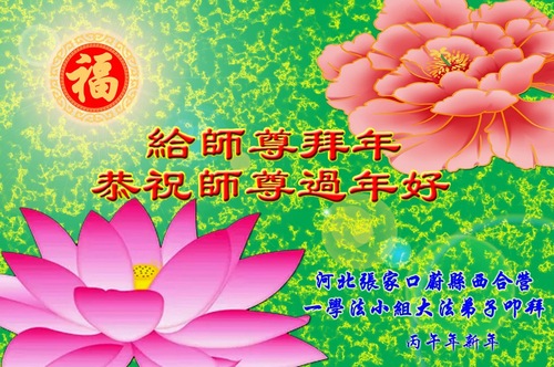 (Minghui.org) Zum chinesischen Neujahrsfest senden Falun-Dafa-Praktizierende auf der ganzen Welt traditionell Grußkarten, Gedichte und Fotos an die Minghui-Website. Damit wünschen sie ihrem barmherzigen, verehrten Meister Li Hongzhi ein frohes neues Jahr.