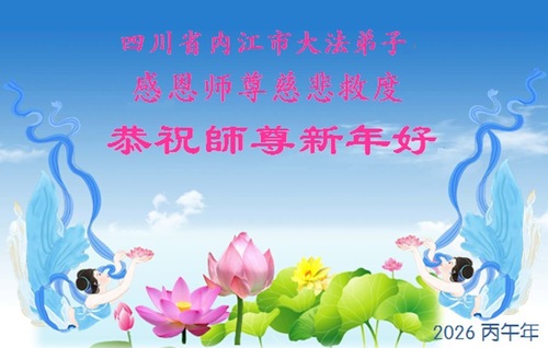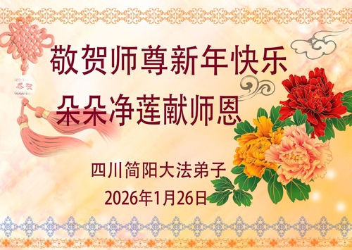 In diesem Bericht listen wir eine Auswahl der Grüße von Falun-Dafa-Praktizierenden aus der Provinz Sichuan auf. Die Grüße kommen von Praktizierenden aus folgenden Städten:Mianyang, Nanchong, Ziyang, Jianyang, Dazhou, Leshan, Neijiang, Shifang, Deyang, Xichang, Panzhihua, Nanchong, Guang’an und anderen Gebieten.