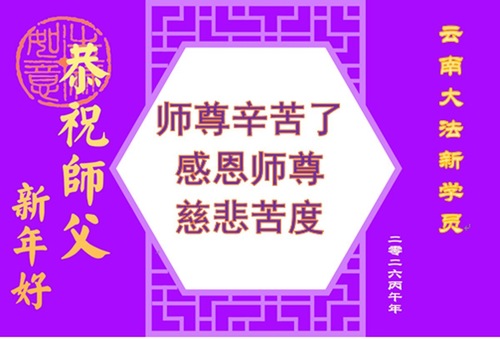 In ihren persönlichen Neujahrsgrüßen bedanken sie sich aufrichtig für die Gelegenheit zur Kultivierung. Viele von ihnen versprechen, sich noch besser zu kultivieren und sich nach den Grundsätzen Wahrhaftigkeit, Güte und Nachsicht zu richten. Sie wünschen sich, dass auch andere Menschen erkennen, wie großartig Falun Dafa ist.