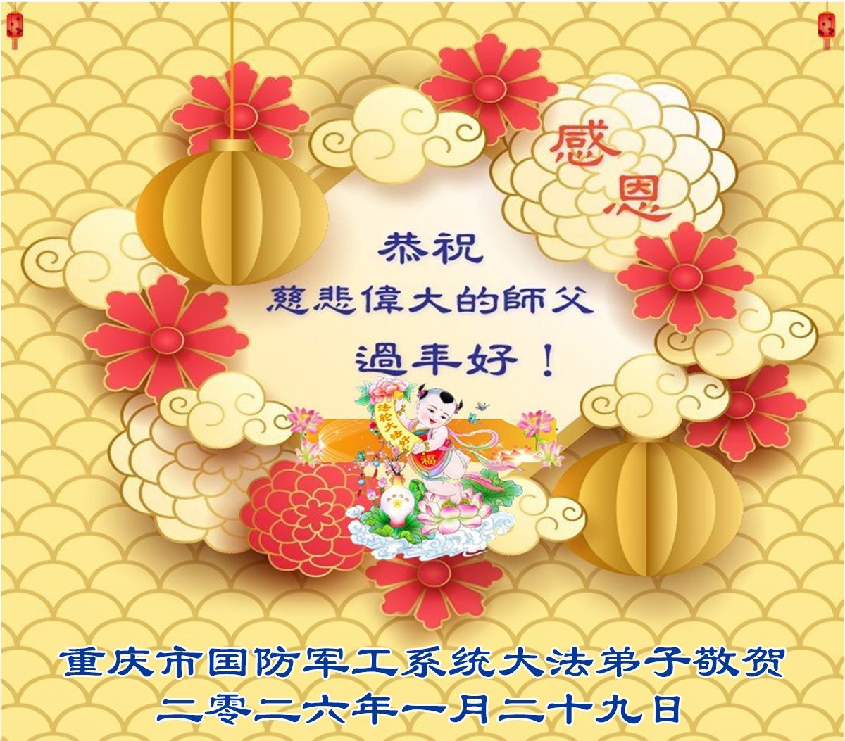 (Minghui.org) Zum chinesischen Neujahrsfest senden Falun-Dafa-Praktizierende auf der ganzen Welt traditionell Grußkarten, Gedichte und Fotos an die Minghui-Website. Damit wünschen sie ihrem barmherzigen, verehrten Meister Li Hongzhi ein frohes neues Jahr.