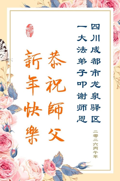 (Minghui.org) Zum chinesischen Neujahrsfest senden Falun-Dafa-Praktizierende auf der ganzen Welt traditionell Grußkarten, Gedichte und Fotos an die Minghui-Website. Damit wünschen sie ihrem barmherzigen, verehrten Meister Li Hongzhi ein frohes neues Jahr.