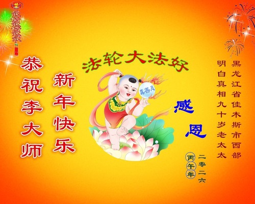 Ein Bürger aus Heilongjiang: „Als meine Mutter krank war und das Bewusstsein verloren hatte, rezitierte unsere ganze Familie aufrichtig ‚Falun Dafa ist gut, Wahrhaftigkeit, Güte und Nachsicht sind gut‘. Meister Li hat meine Mutter gerettet. Jetzt wird ihr körperlicher Zustand immer besser.“