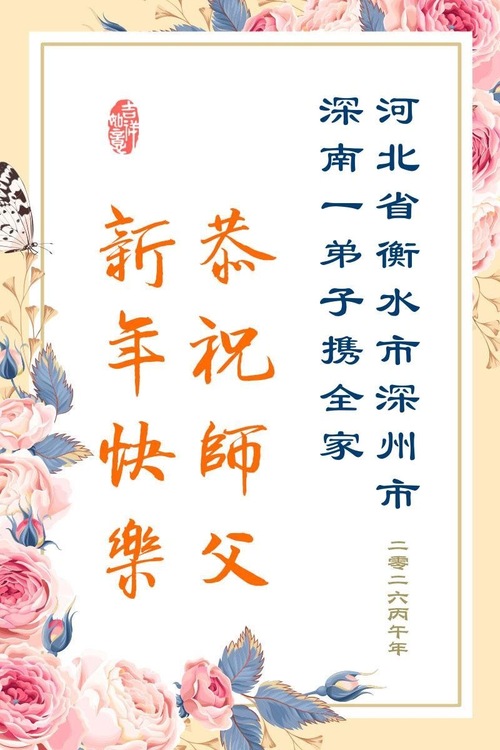 (Minghui.org) Zum chinesischen Neujahrsfest senden Falun-Dafa-Praktizierende auf der ganzen Welt traditionell Grußkarten, Gedichte und Fotos an die Minghui-Website. Damit wünschen sie ihrem barmherzigen, verehrten Meister Li Hongzhi ein frohes neues Jahr.
