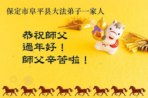 (Minghui.org) Zum chinesischen Neujahrsfest senden Falun-Dafa-Praktizierende auf der ganzen Welt traditionell Grußkarten, Gedichte und Fotos an die Minghui-Website. Damit wünschen sie ihrem barmherzigen, verehrten Meister Li Hongzhi ein frohes neues Jahr.