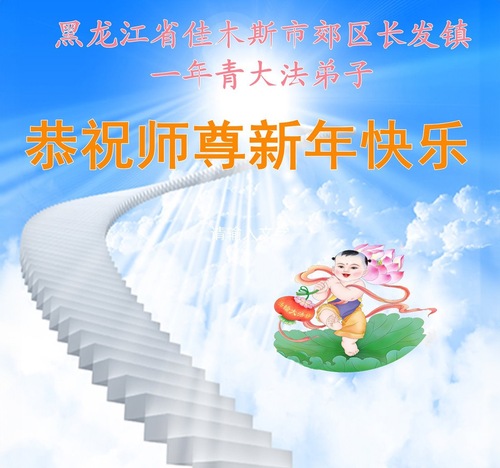 Ein junger Dafa-Praktizierender aus Jiamusi, Provinz Heilongjiang, schrieb: „Raum und Zeit überwindend habe ich schließlich das Dafa erhalten und bin durch das heilige Band des Schicksals mit dem Meister verbunden! Ich werde mich gewiss im Fa kultivieren, das Fa lernen und die Übungen praktizieren, ohne nachzulassen, die kostbare Gelegenheit schätzen und den aufrichtigen Weg gehen.“