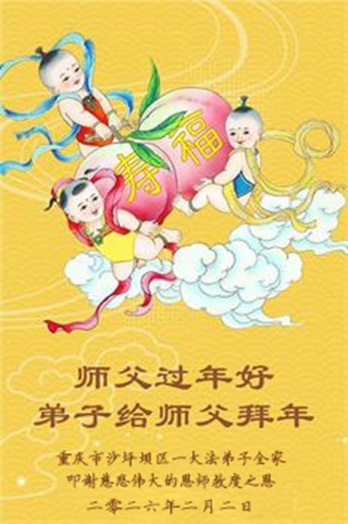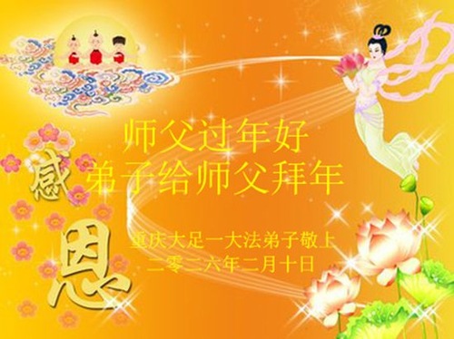 (Minghui.org) Zum chinesischen Neujahrsfest senden Falun-Dafa-Praktizierende auf der ganzen Welt traditionell Grußkarten, Gedichte und Fotos an die Minghui-Website. Damit wünschen sie ihrem barmherzigen, verehrten Meister Li Hongzhi ein frohes neues Jahr.