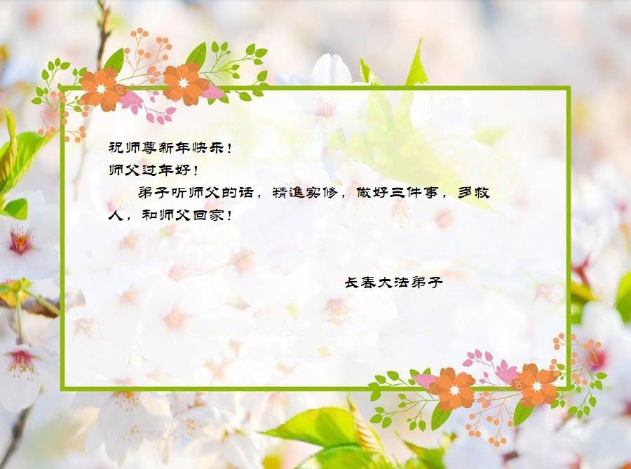 (Minghui.org) Zum chinesischen Neujahrsfest senden Falun-Dafa-Praktizierende auf der ganzen Welt traditionell Grußkarten, Gedichte und Fotos an die Minghui-Website. Damit wünschen sie ihrem barmherzigen, verehrten Meister Li Hongzhi ein frohes neues Jahr.