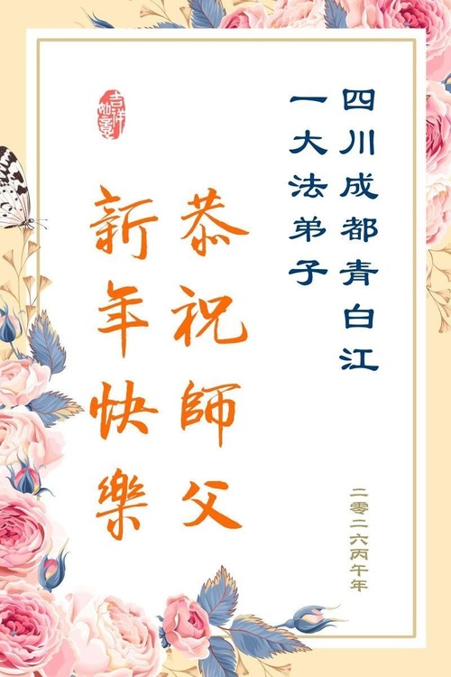 (Minghui.org) Zum chinesischen Neujahrsfest senden Falun-Dafa-Praktizierende auf der ganzen Welt traditionell Grußkarten, Gedichte und Fotos an die Minghui-Website. Damit wünschen sie ihrem barmherzigen, verehrten Meister Li Hongzhi ein frohes neues Jahr.