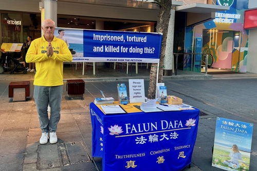 „Ich lebe in einer kleinen Stadt. Jede Hin- und Rückfahrt zwischen dem Ort wo die wahren Umstände erklärt werden und meinem Zuhause dauert über zwei Stunden mit dem Auto. In Surfers Paradise treffe ich Einheimische und Touristen, die noch nie von Falun Dafa gehört haben. Ich erzähle ihnen von der Schönheit und dem Nutzen von Falun Dafa und decke die Lügen der Kommunistischen Partei Chinas (KPCh) über die anhaltende Verfolgung von Falun-Dafa-Praktizierenden auf. Das hilft den Menschen, die wahren Hintergründe zu erkennen und die Lügen der Partei zu durchschauen. Wer die Wahrheit erkennt, hat eine bessere Zukunft. Ich weiß, dass meine Bemühungen, Menschen zu helfen und eine bessere Welt zu schaffen, sinnvoll sind.