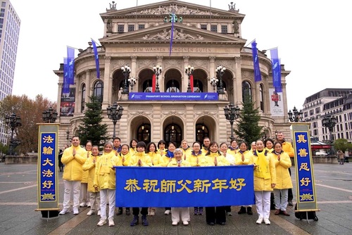 Falun-Dafa-Praktizierende in Frankfurt wünschen Meister Li ein frohes chinesisches Neujahr