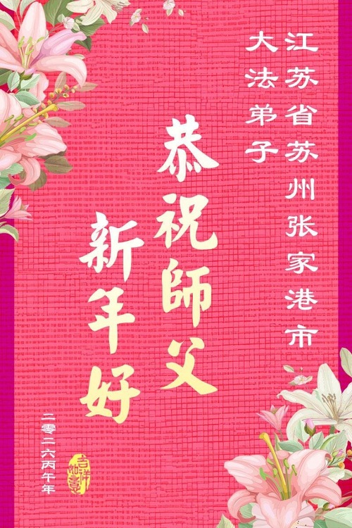 (Minghui.org) Zum chinesischen Neujahrsfest senden Falun-Dafa-Praktizierende auf der ganzen Welt traditionell Grußkarten, Gedichte und Fotos an die Minghui-Website. Damit wünschen sie ihrem barmherzigen, verehrten Meister Li Hongzhi ein frohes neues Jahr.